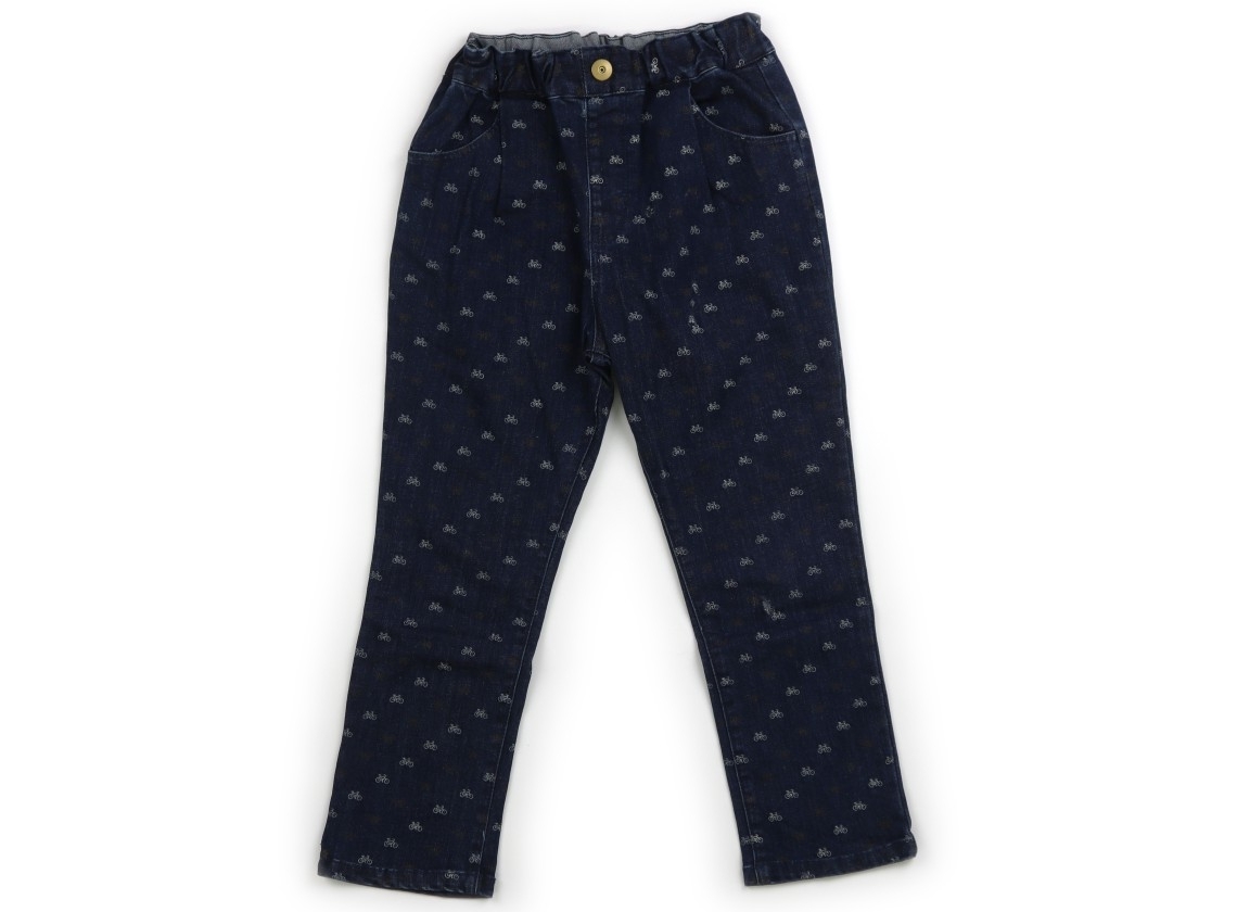 綿・ポリウレタン素材。ウエストは総ゴムです。全体的に毛羽立ちと色褪せがあります。左膝に白い汚れがあります。後ろ身頃の右足にご飯粒のような付着汚れが複数ありますが、お手入れ次第でまだまだお使い頂けそうです。