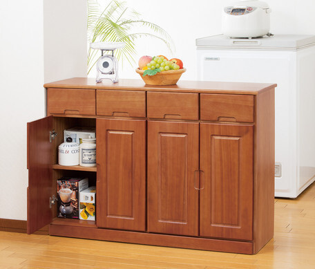 即決可@新品天然木カウンターワゴン 4枚扉/ブラウン | ||||||||||||