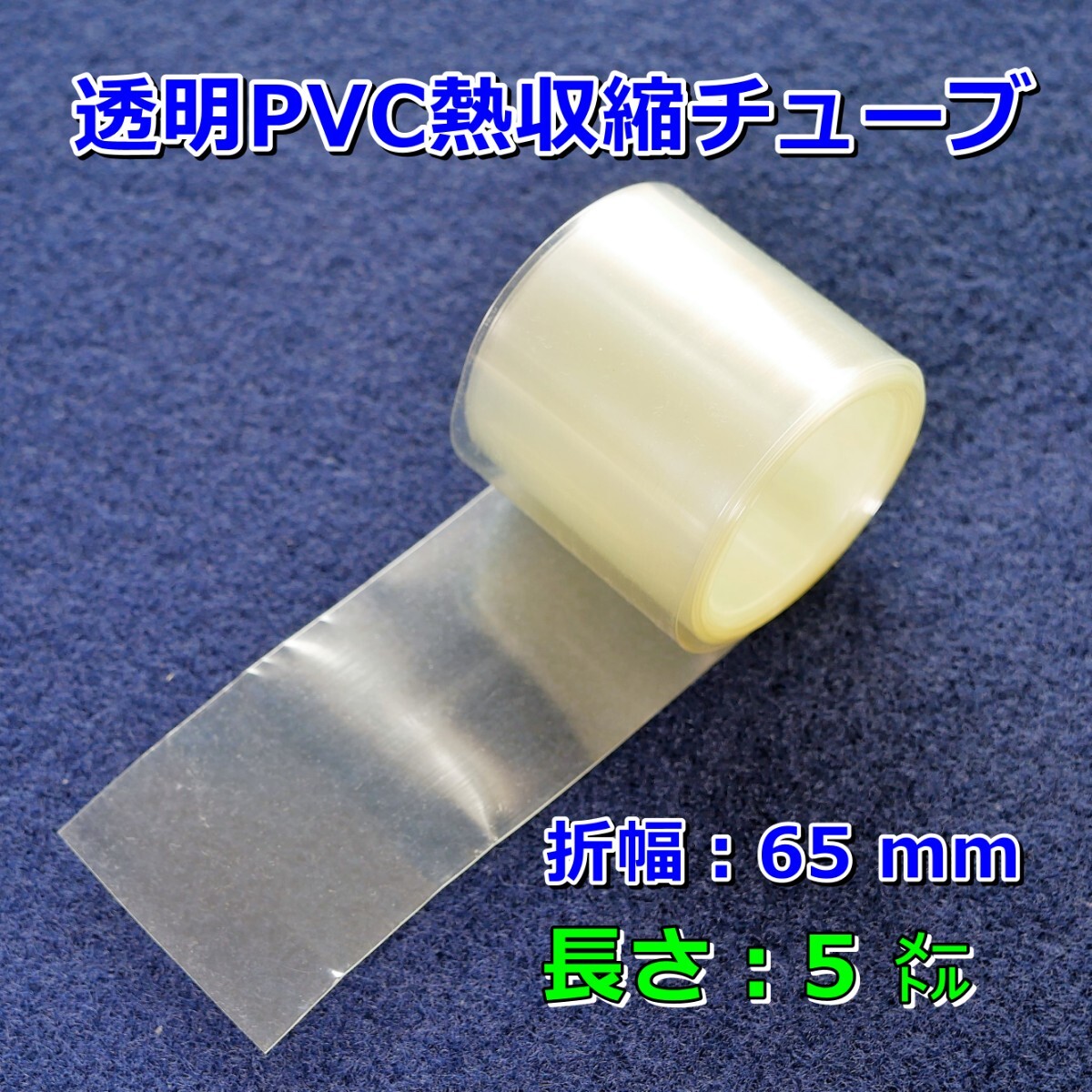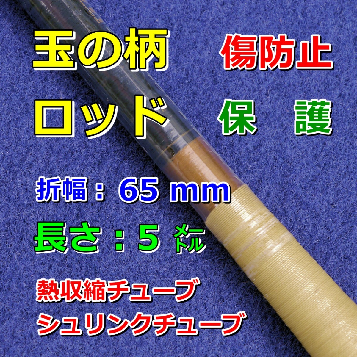 65⑤●玉の柄・ロッドの傷防止/熱収縮チューブ(透明PVC)/釣り竿、タモの柄などの保護/折幅65mm長さ5㍍