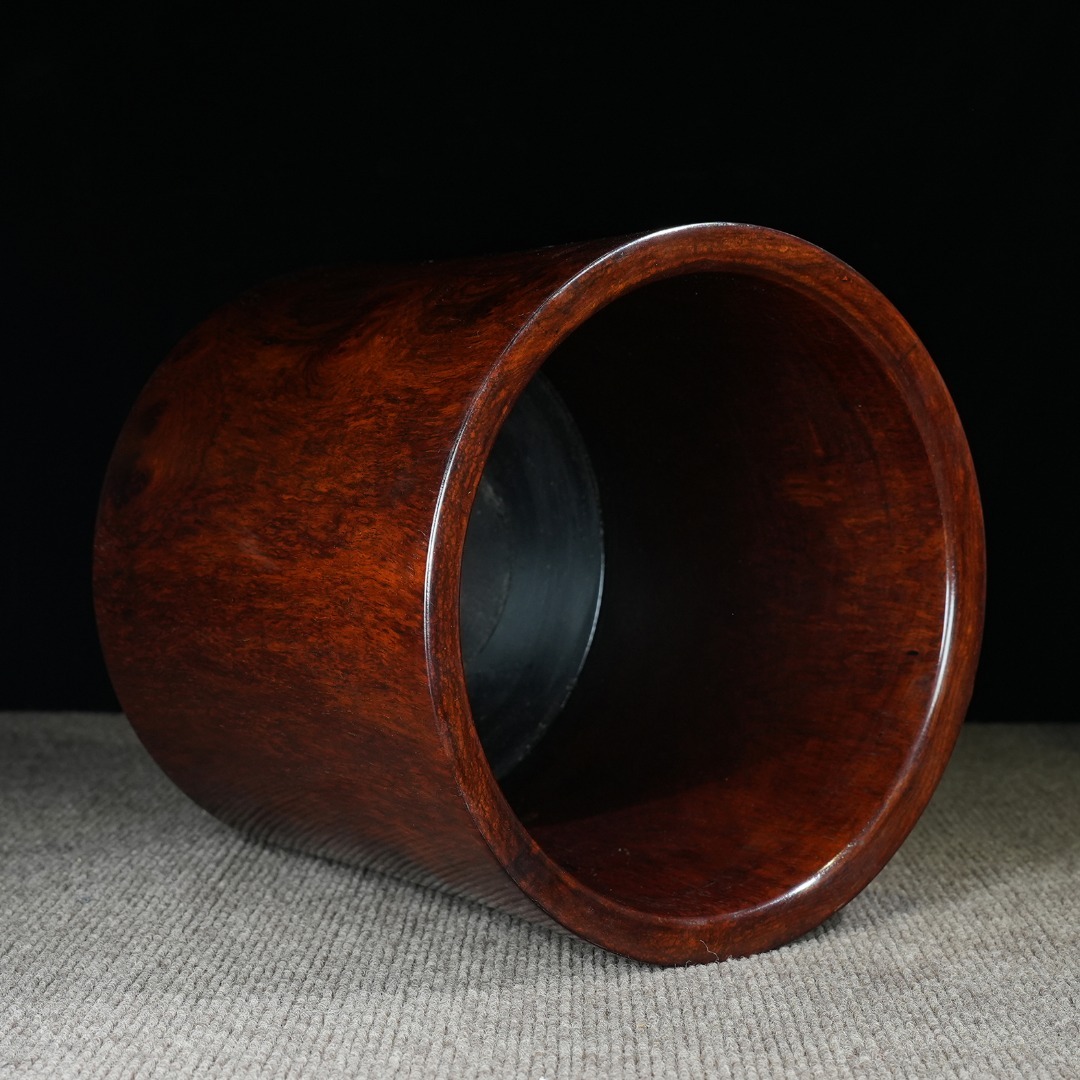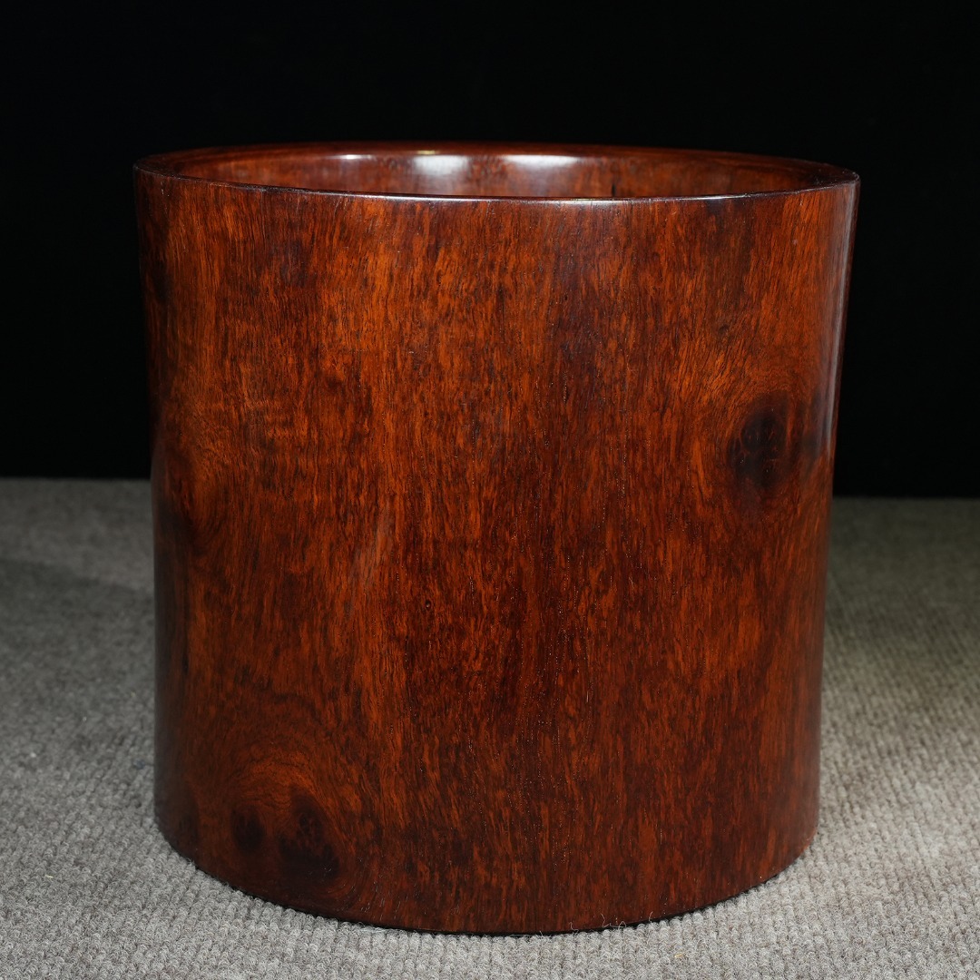 唐物 清 花梨木 圓筆筒 置物 筆道具 文房具 天然木 木製 極細工 中国古玩 骨董品 古美味 D68