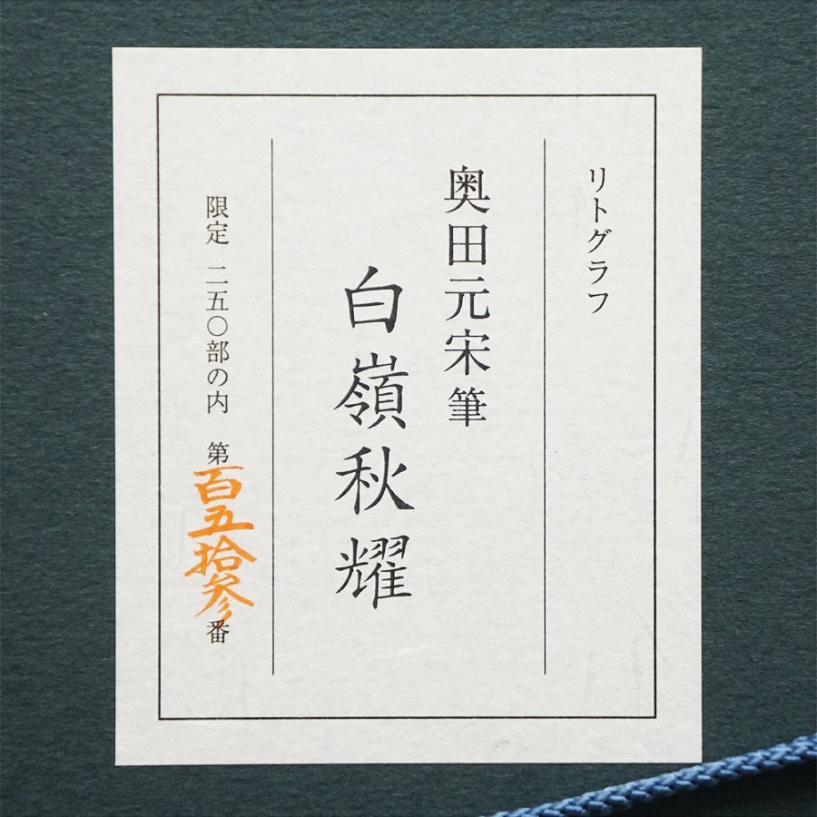 奥田元宋 『白嶺秋耀』153/250 石版画 リトグラフ 絵画 美術 芸術 真作保証品 肉筆サイン有 共シール 古美術品 こちらのお品はUSED品です。 額、保護アクリル板は経年などによる傷、汚れなどの傷みがあります。 経年によるシミがあります。 箱、黄袋は汚れなど傷みがあります。 真作保証品です。 状態は画像を参考にされて下さい。 よく画像をご確認いただき、下記、説明文章、注意事項、送料確認の上、充分ご理解、ご納得の上で、ご自身の判断で納得後に入札をお願いします。 古美術品に関しましては、見解の相違などございますので 時代、地域、来歴等の保証は致しかねます。 ご不明な点がありましたら、質問欄から、お問合せ下さい。 あくまでもUSED品になりますので完璧をお求めの方、神経質な方はご入札をお控え下さい。 額サイズ 縦約53.5×横約60cm 【発送詳細】 広島県からの発送 ゆうパック 160サイズ |