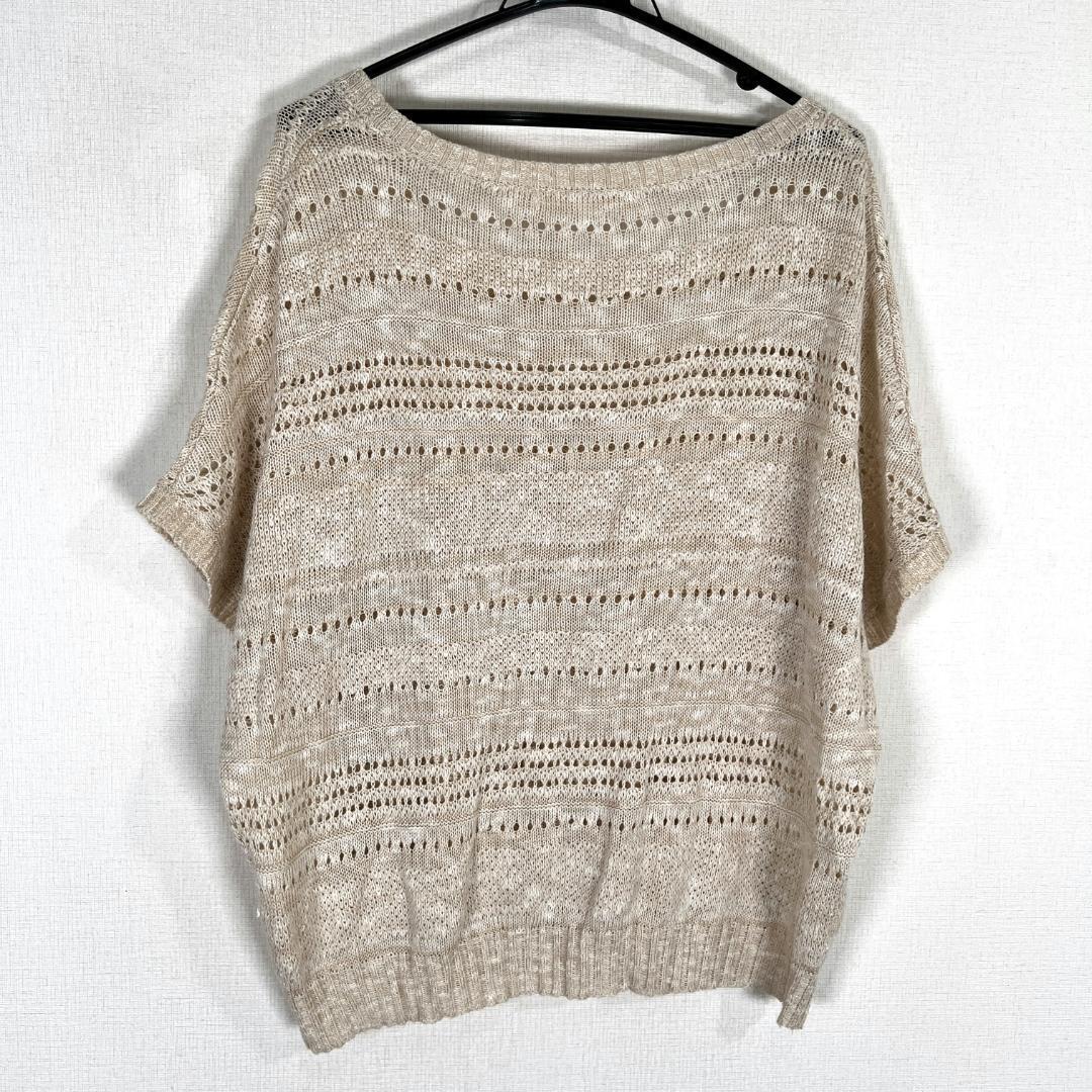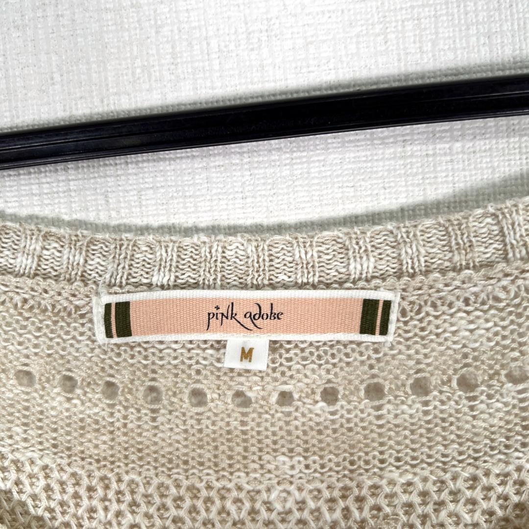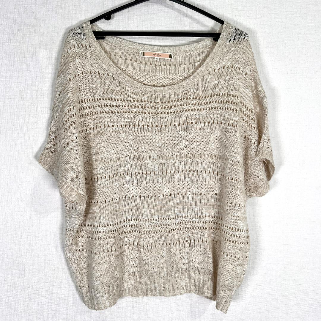 【pink adobe】ピンクアドベ ワールド 春夏秋 ベージュ 透かし編みニット セーター トップス レディース Mサイズ【a007】
