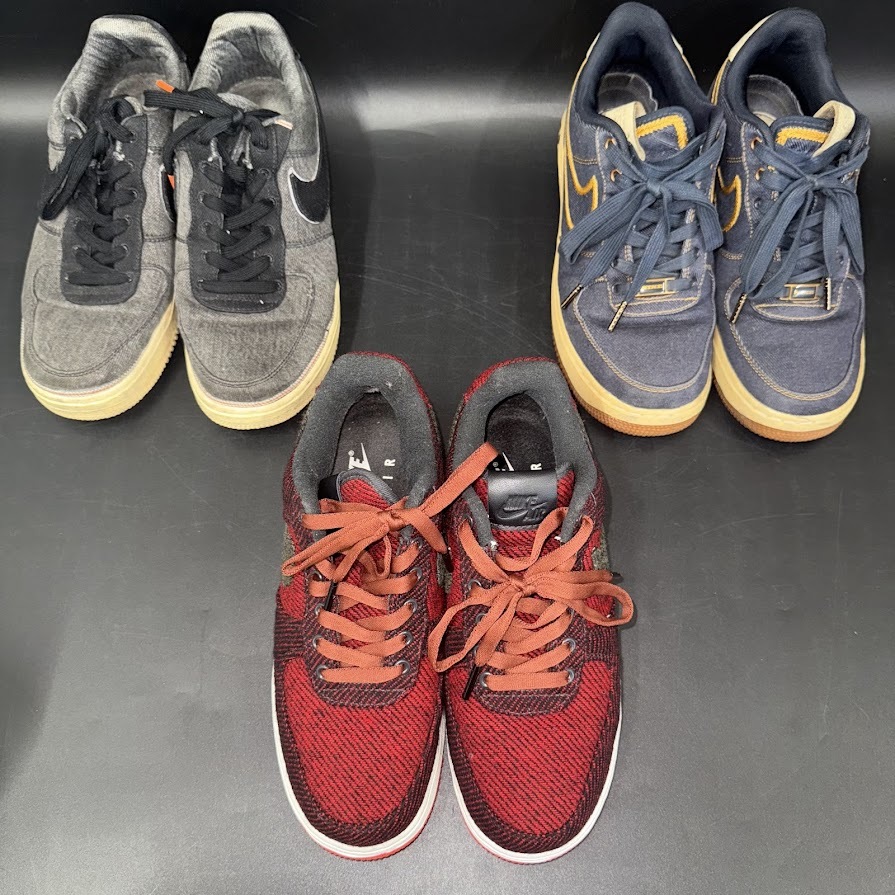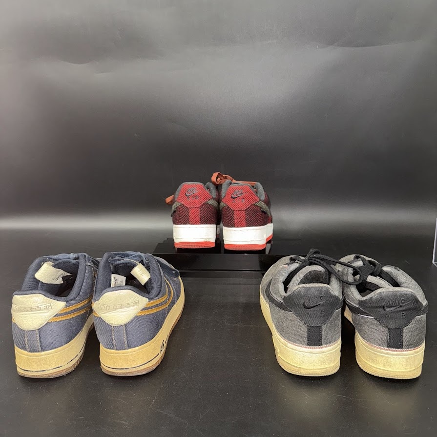 【A610-8】 NIKE AIR FOCE プレミアム [ 905345-006 (ブラック・デニム)/ CK-5076-903 (赤・黒)/ 318775-404 (デニム)] ロースニーカー3点