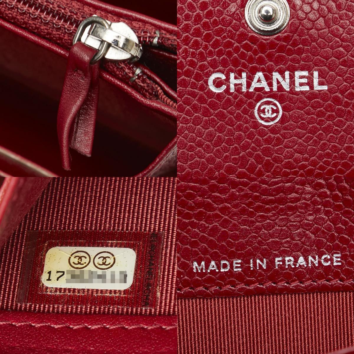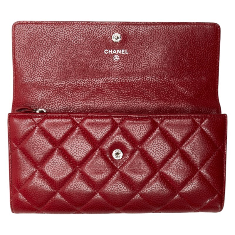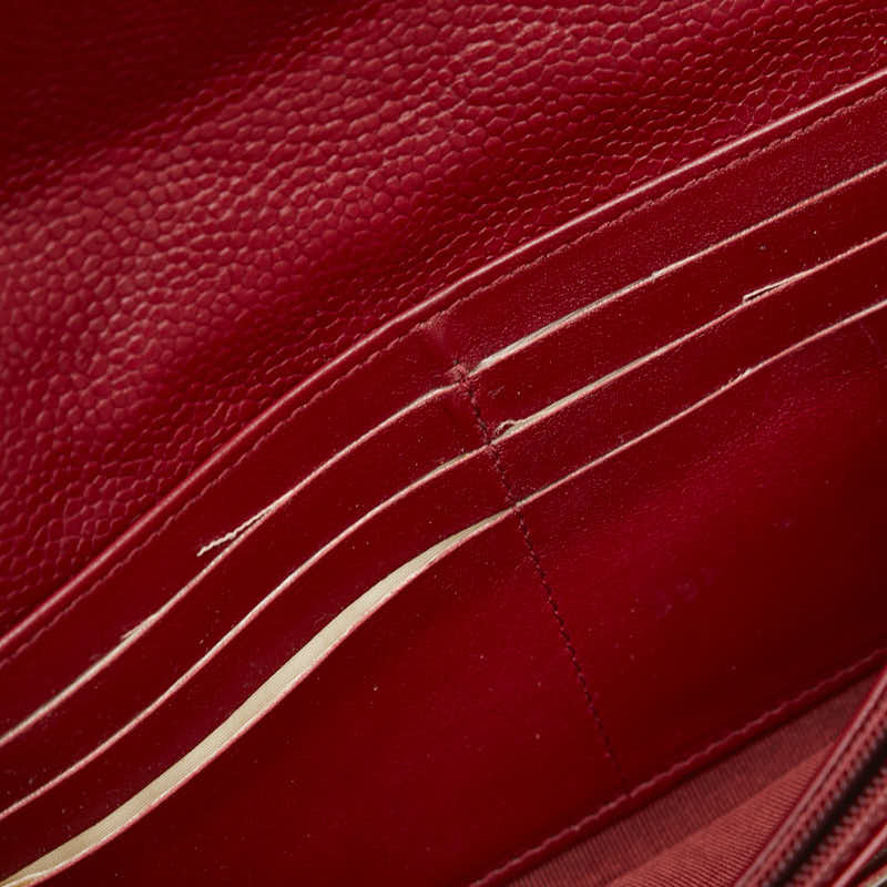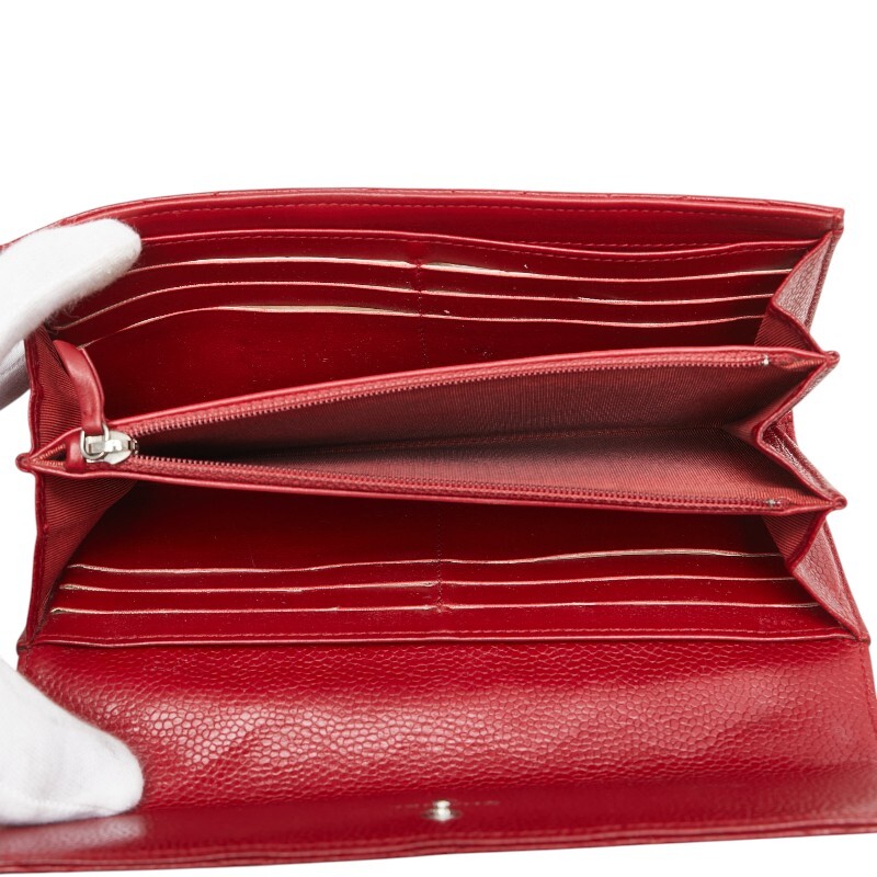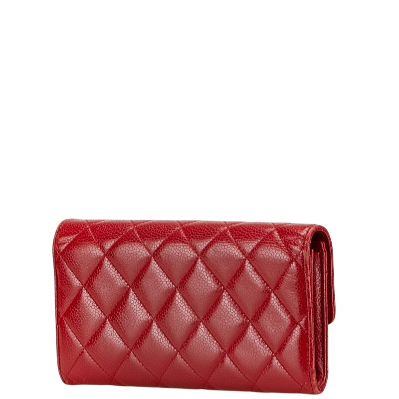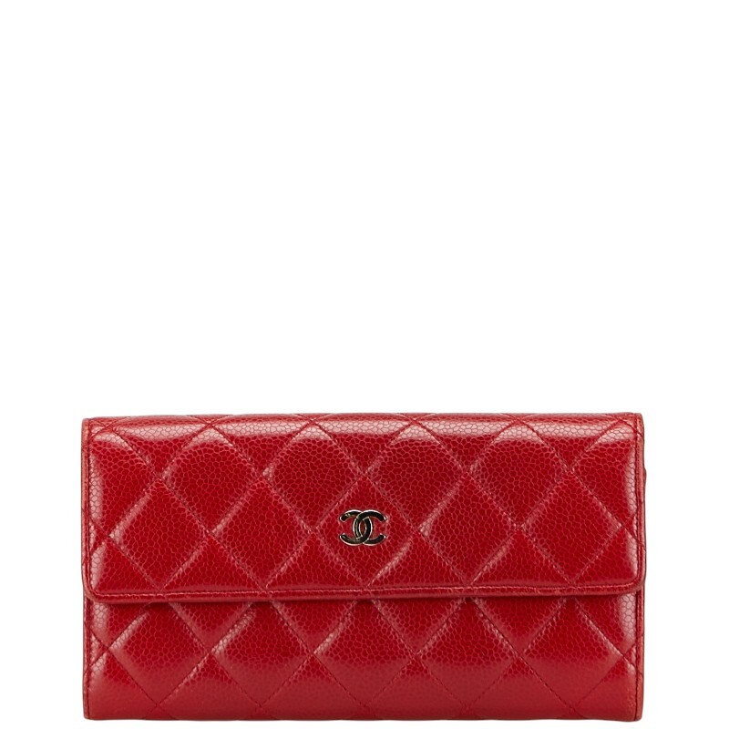 シャネル マトラッセ ココマーク 長財布 A50096 レッド キャビアスキン レディース CHANEL 【中古】