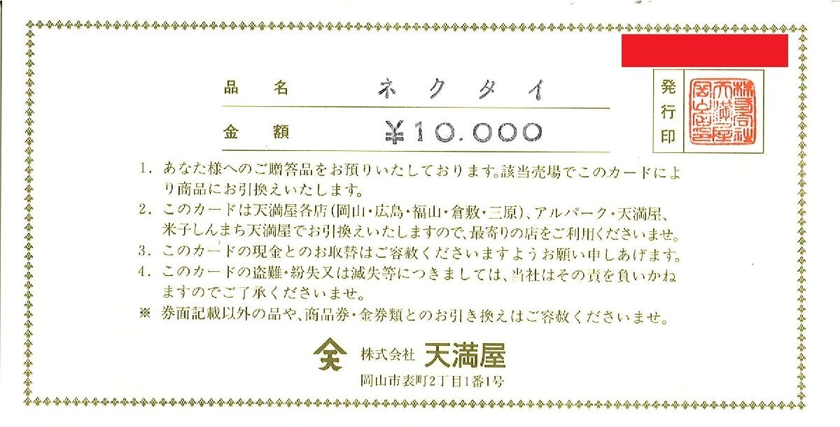 天満屋 ネクタイ引換券 ギフトカード 各店で利用可能です 10,000円券 他商品には利用できません