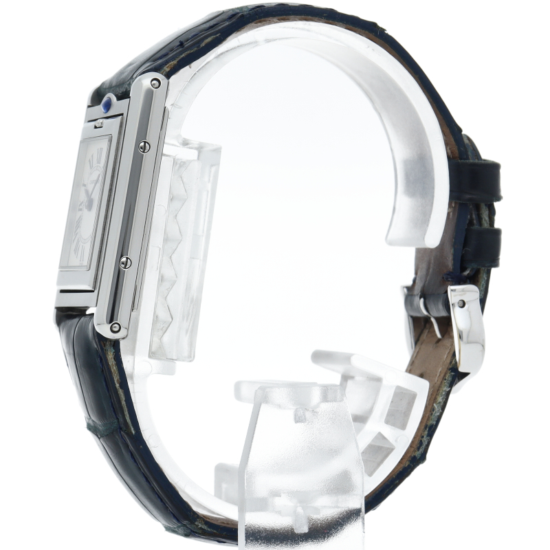 商品説明:バスキュラントとはフランス語で傾く、ひっくり返すなどの意味を持ちます。その名の通り文字盤を衝撃から保護する目的で時計ごと反転させる構造になっています。時計を裏返しにするとアクセサリー感覚で使い分け出来るのも楽しみの一つです。