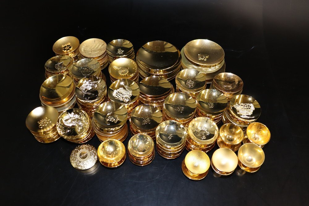 商品名 | 【20P2393】1円スタート 金杯 金盃 他 24KGP 金メッキ 約10kg 大量まとめ オリンピック 皇室 祝品 ゴールドカラー 金色 縁起物 現状品 |
