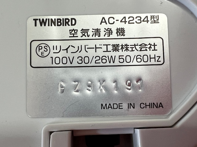 【菊水-440】(MZ) TWINBIRD 空気清浄機 ファンディスタイル AC-4234 ホワイト 動作確認ずみ/(S) |