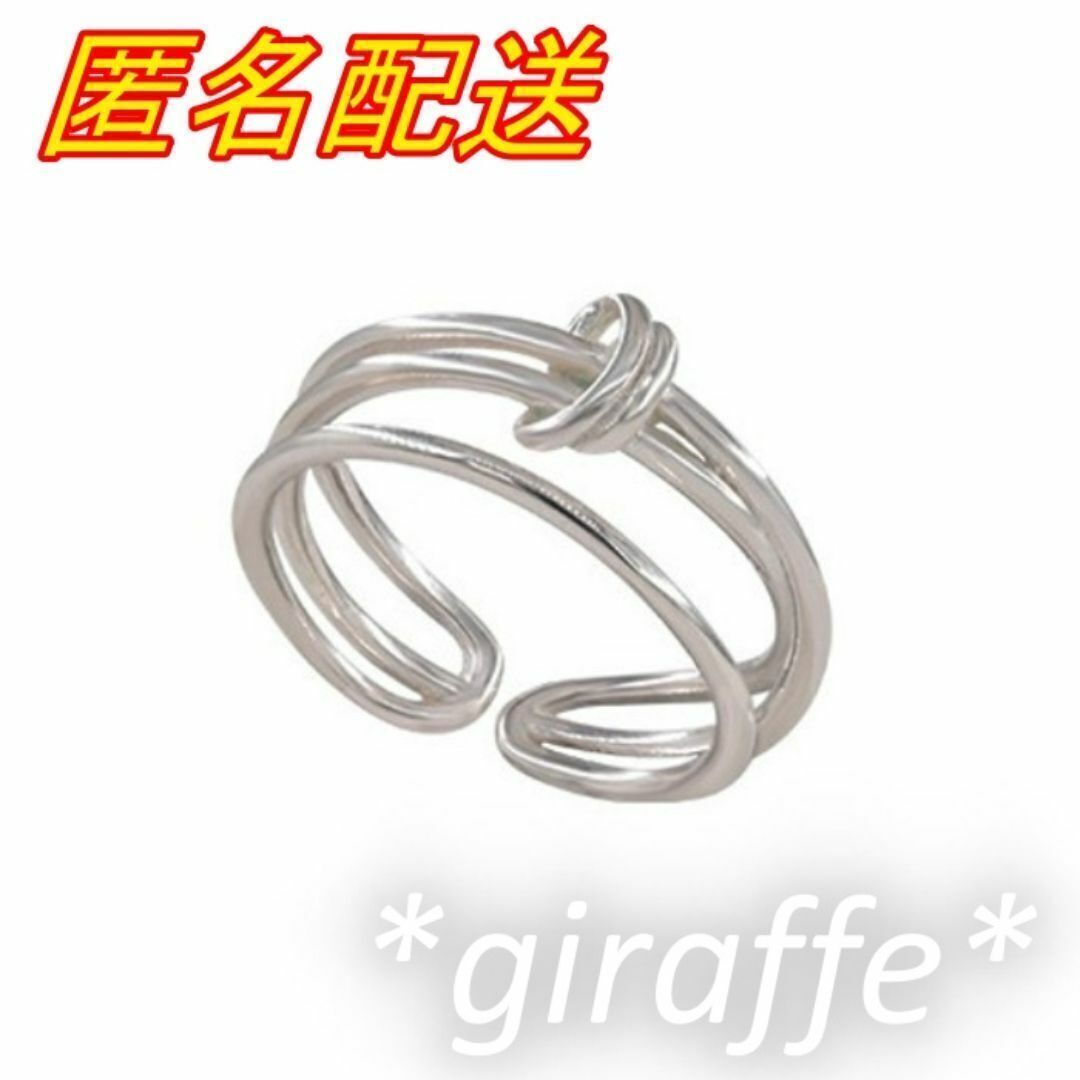 A541 匿名配送 指輪 レディース シルバー ノット リング 多重 s925 フリーサイズ サイズ調節可能 結び目 シンプル