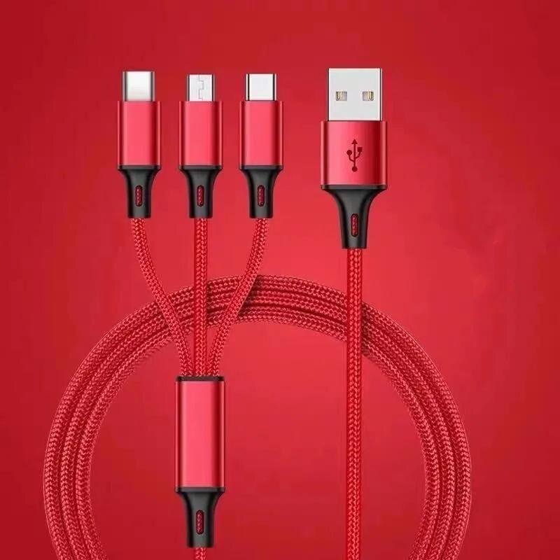 【レッド×2本セット】iPhone15ケーブル USB Type-C 3in1 iPhoneケーブル Android microUSB Type-C 急速充電 USBケーブル 高耐久 C36