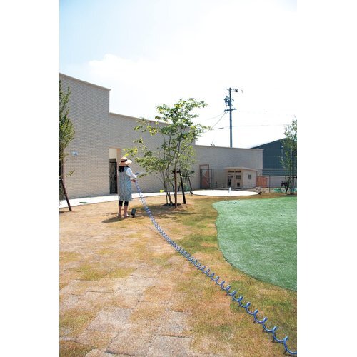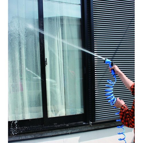 ホースは伸縮性があり、最長で約15mまで伸びる仕様。