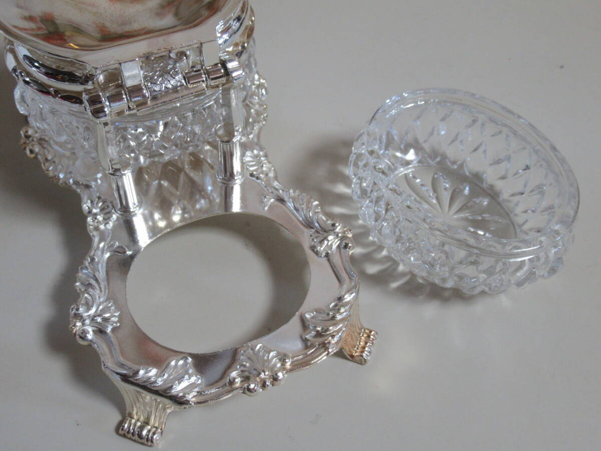 R7 03★レトロアンティーク 銀メッキ リボン 可愛い 蓋付きシュガーポット・ガラス製・シュガーポット2個・スプーン2個