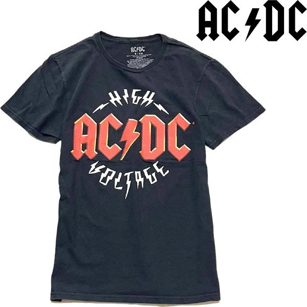 1点物◆AC/DCエーシーディーシー黒プリントTシャツ古着メンズSMレディースOKアメカジ90sストリート/スポーツUSブランドバンTロックT349676