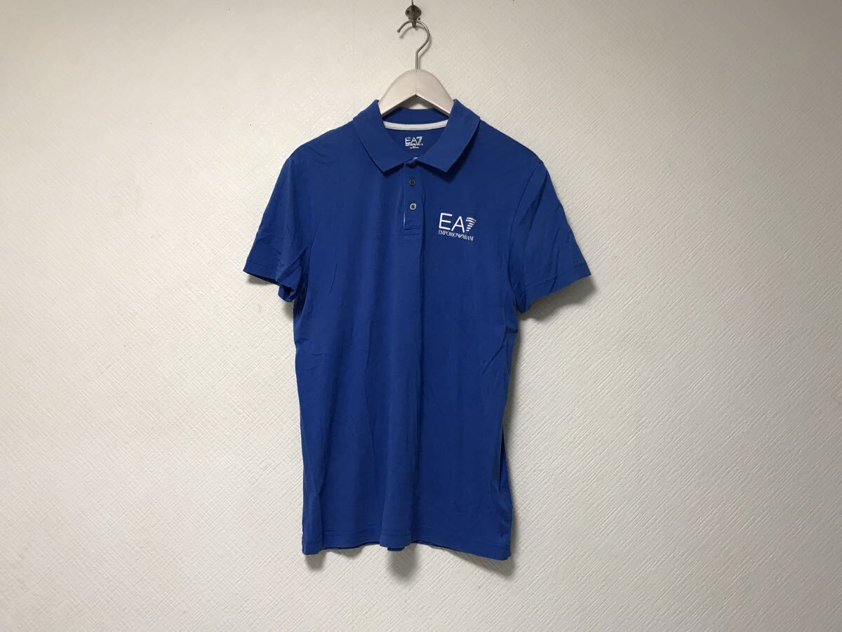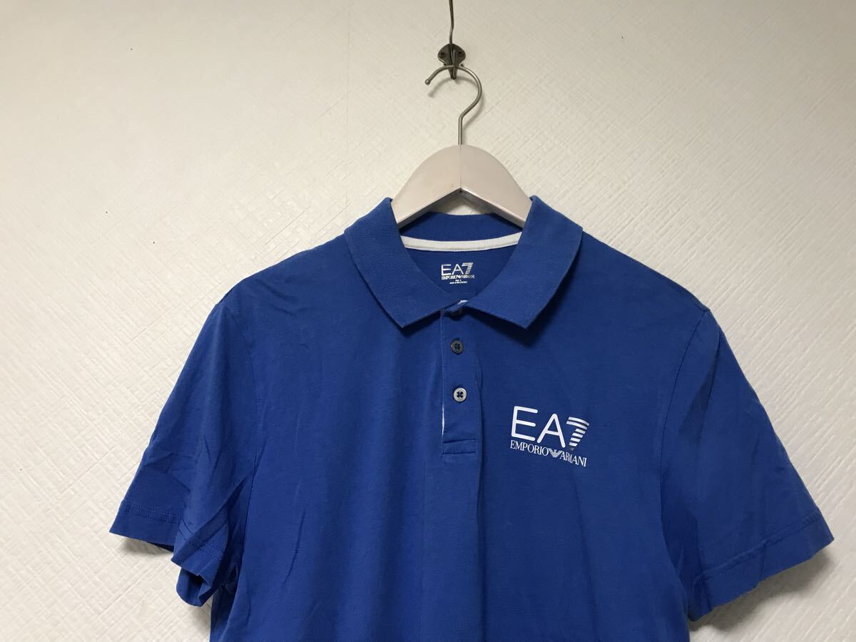 【商品名】本物エンポリオアルマーニEMPORIOARMANI EA7コットンロゴ文字プリント半袖ポロシャツメンズサーフアメカジミリタリーストリートスケーターワークビジネススーツモードゴルフドレスバイカーロック青ブルーSモーリシャス製