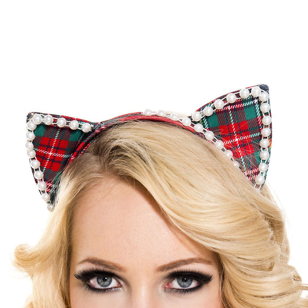 パールで縁取られたかわいい猫耳のヘアバンドです。