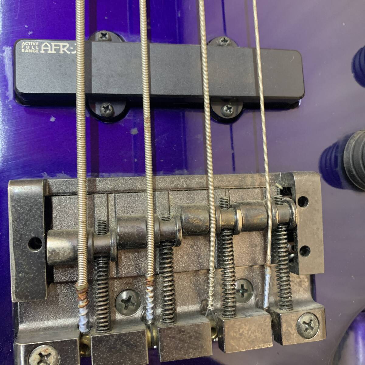 傷や錆等ダメージが多く、現状でロッドが締め切り、強い順反り状態になっていることに加え、バッテリーBOXが陥没故障しており、プリアンプも反応がなくアンプに繋いでも音が出ない状態ですので、要修理品扱いとなります。