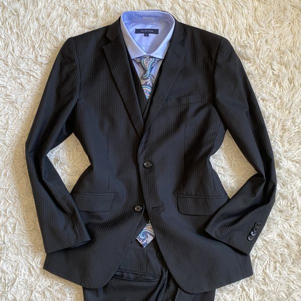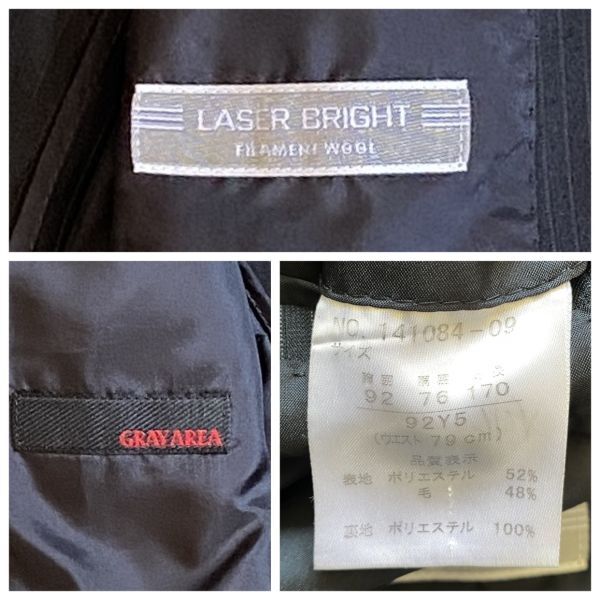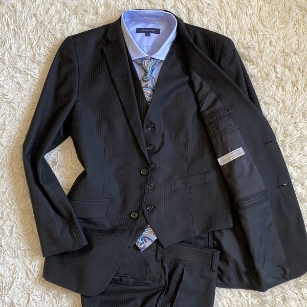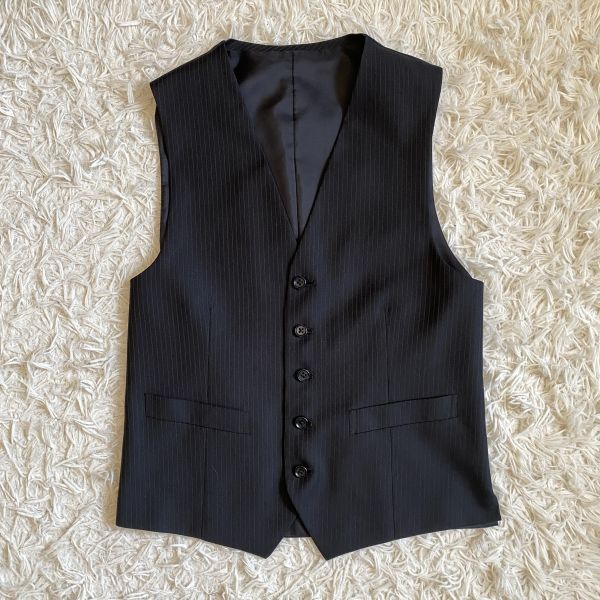 圧巻3ピース!GRAYAREA 背抜き ベスト Y5 M セットアップ メンズ スーツ ジレ スリーピース グレイエリア 2B ダークネイビー ストライプ