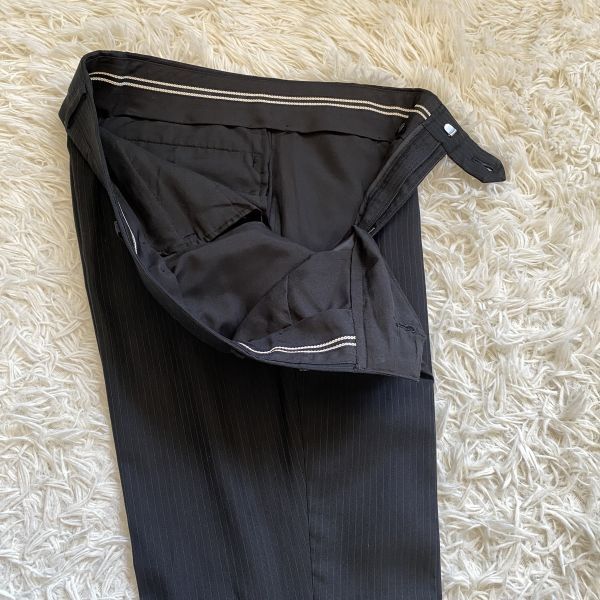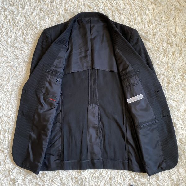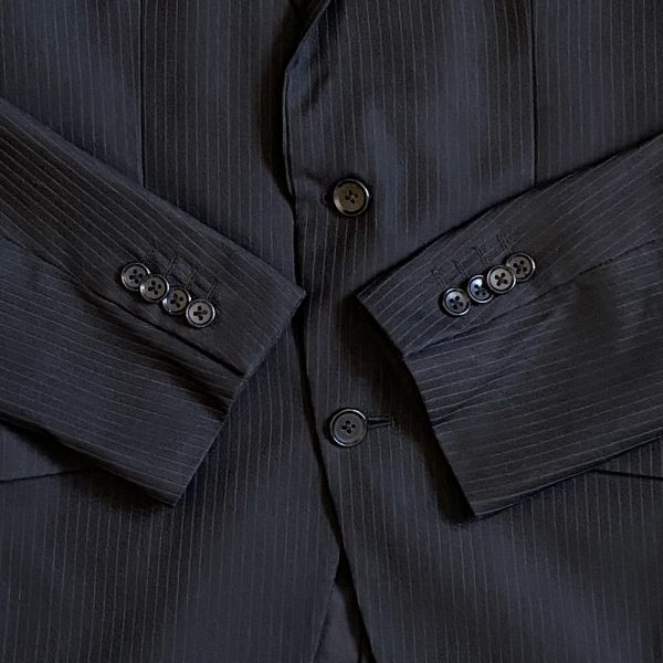 色は黒に近いダークネイビーにシャドーストライプのデザインです。