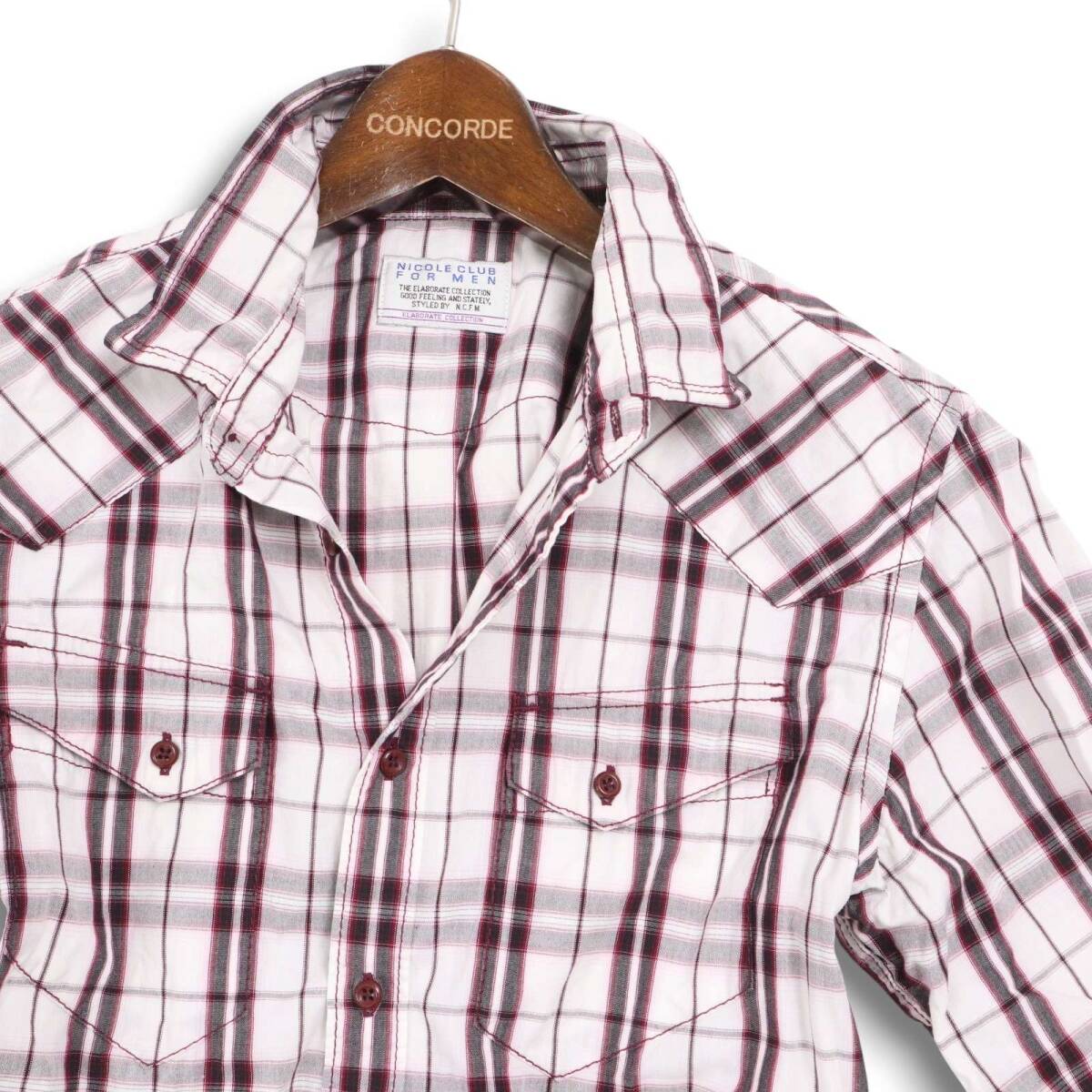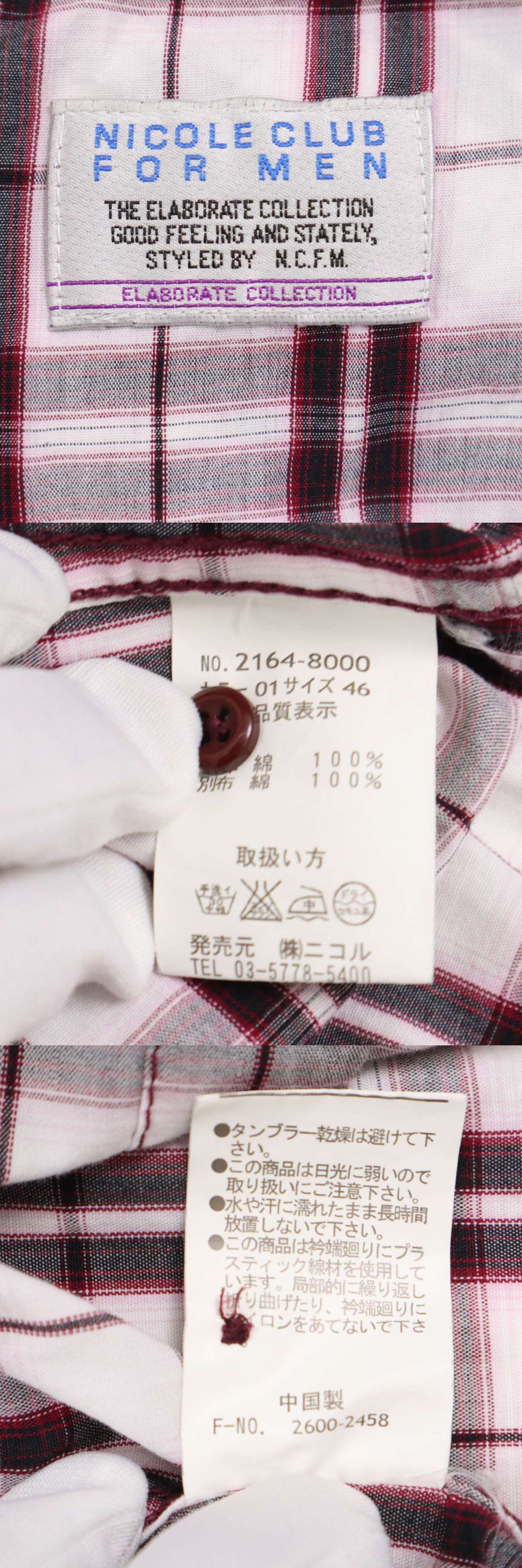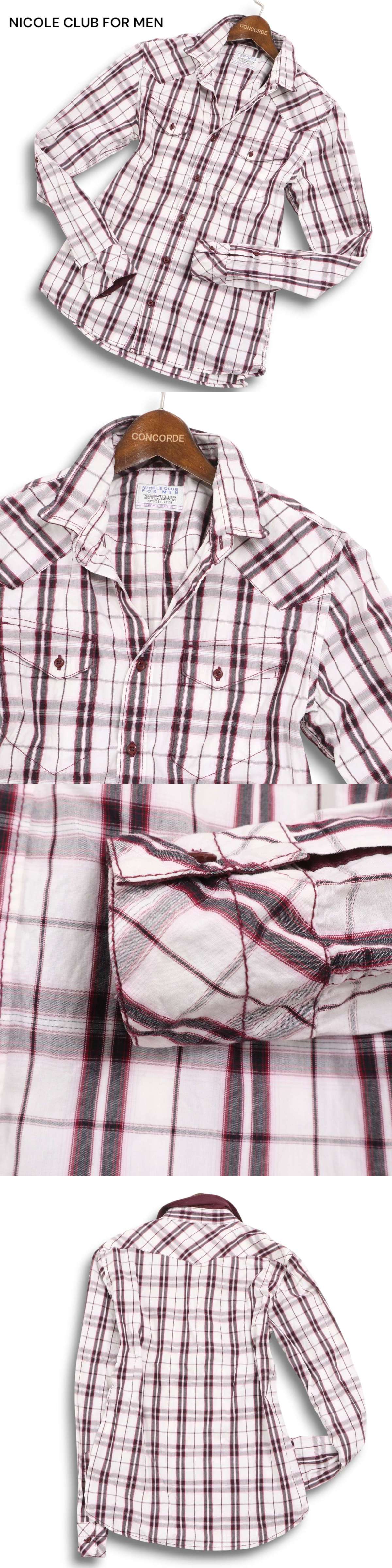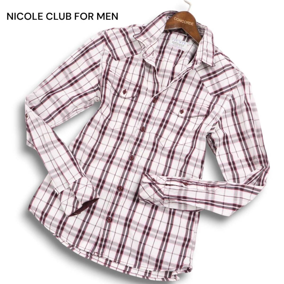 NICOLE CLUB FOR MEN ニコルクラブ フォーメン 通年 襟ワイヤー★ 長袖 ウエスタン チェック シャツ Sz.46 メンズ