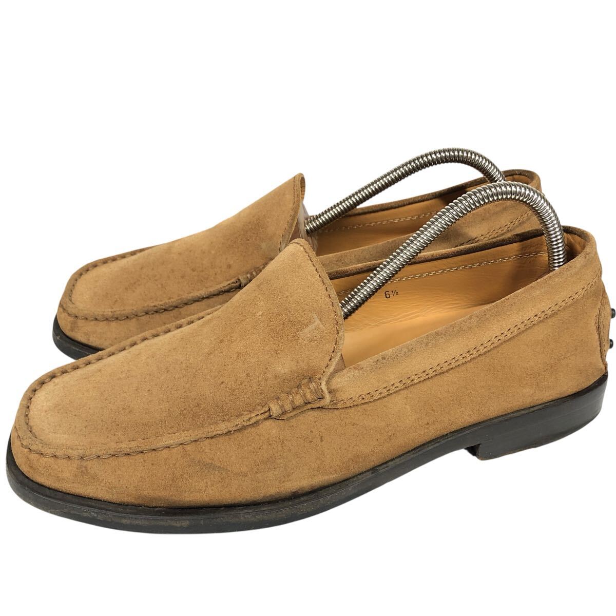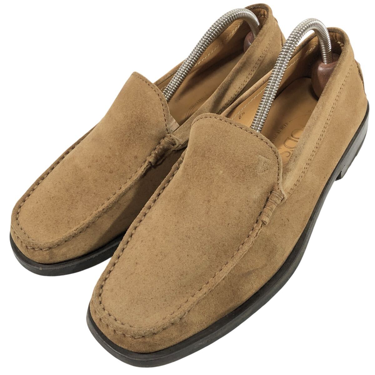 【トッズ】本物 TOD’S 靴 25.5cm ロゴモチーフ 茶 ローファー スリッポン ビジネスシューズ スエード 男性用 メンズ イタリア製 6 1/2