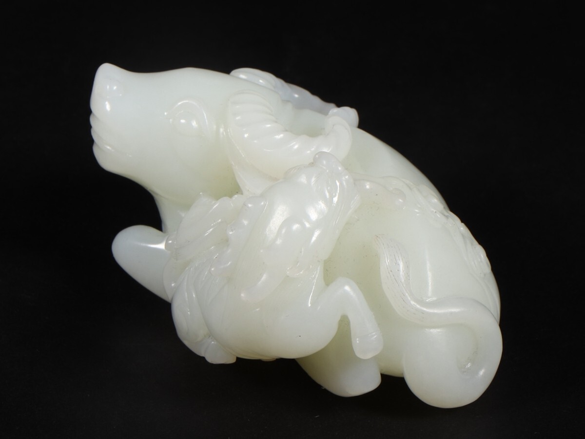 【瓏】和田玉 白玉彫 瑞獣 牛 清時代 極細工 手彫り 置物擺件 中国古賞物 古美術 蔵出
