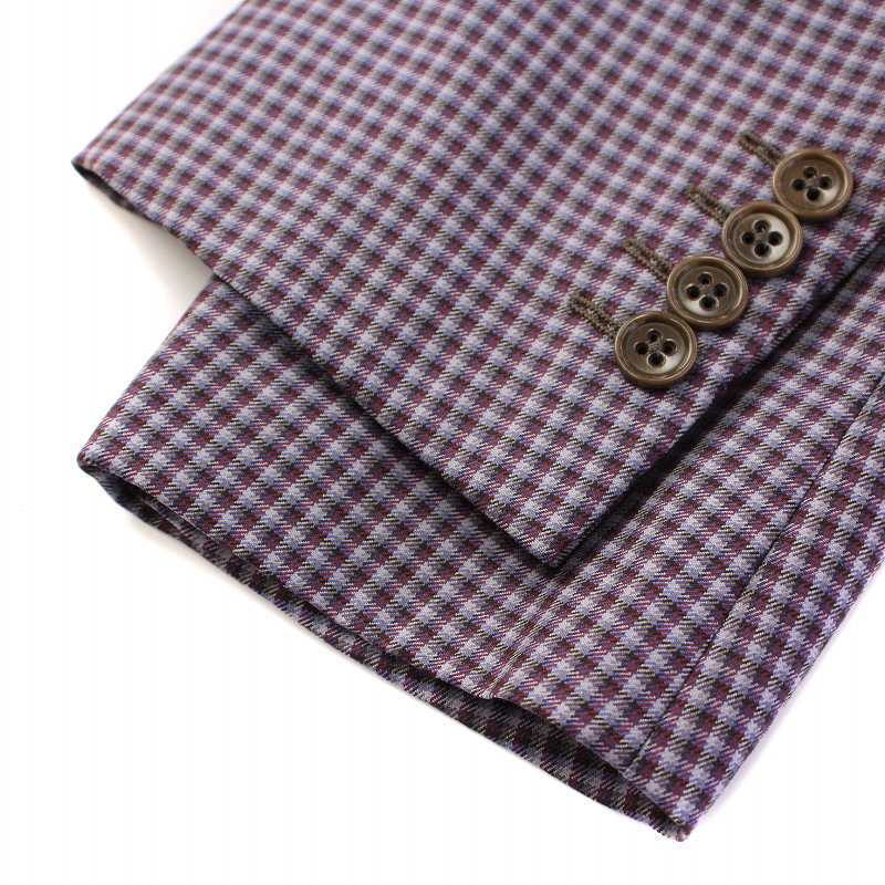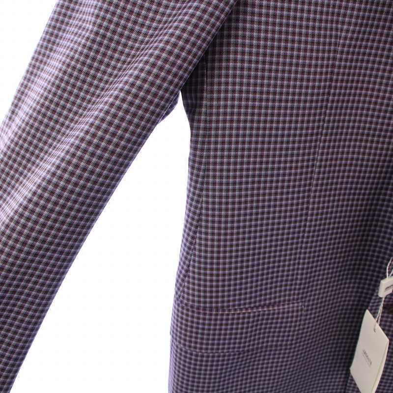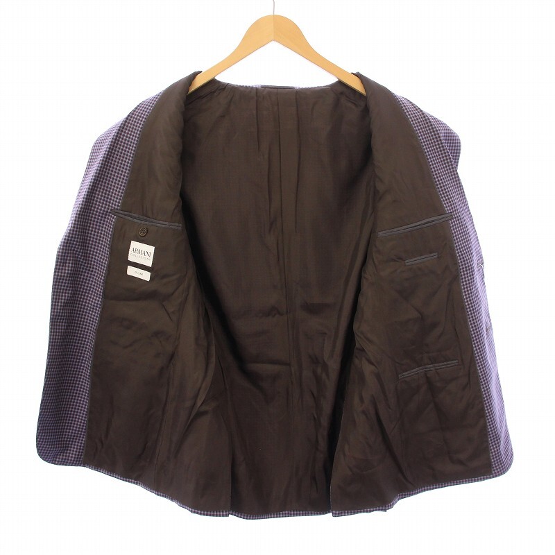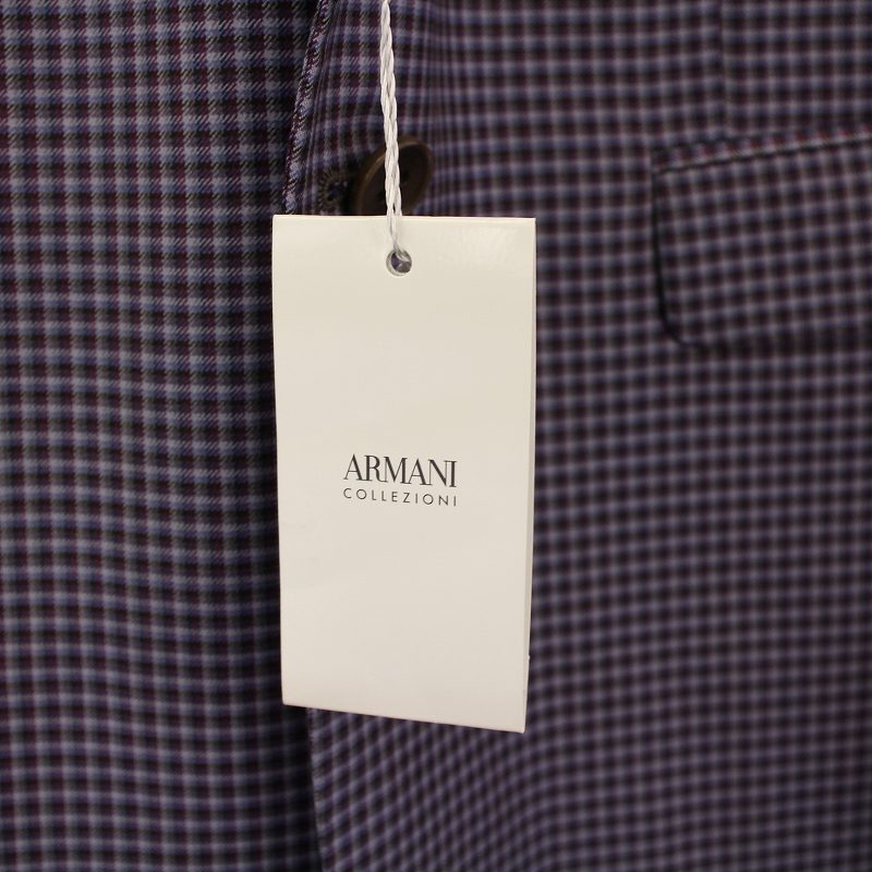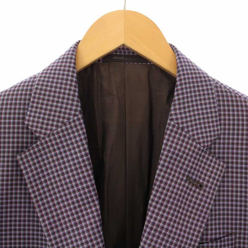 未使用品 アルマーニ コレツィオーニ テーラードジャケット ブレザー アウター シングル 総裏地 ウール チェック柄 I48 紫 パープル