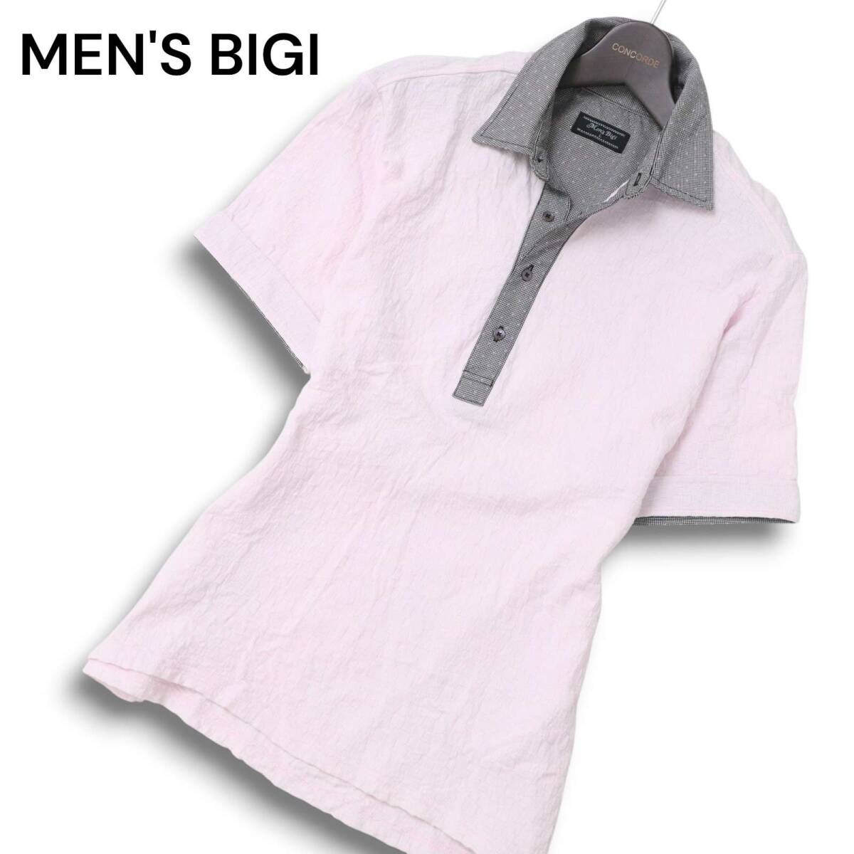 MEN'S BIGI メンズビギ 春夏★ 半袖 リンクス チェック ポロシャツ Sz.L メンズ