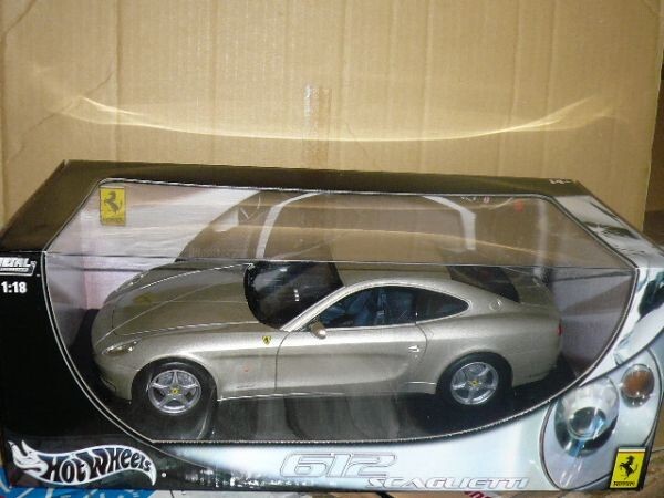 1/18 HOT WHEELS Ferrari 612 SCAGLIETTIです。箱が少し傷んでいますので、ご了承の上入札ください。商品の状況は写真でご判断の上、ノークレーム・ノーリターンでお願いします。保証はできませんが、定形外郵便での発送も可能です。