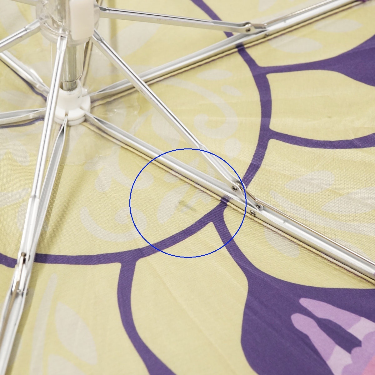 パープルの無地生地とデザイン生地の2重張りになっています。