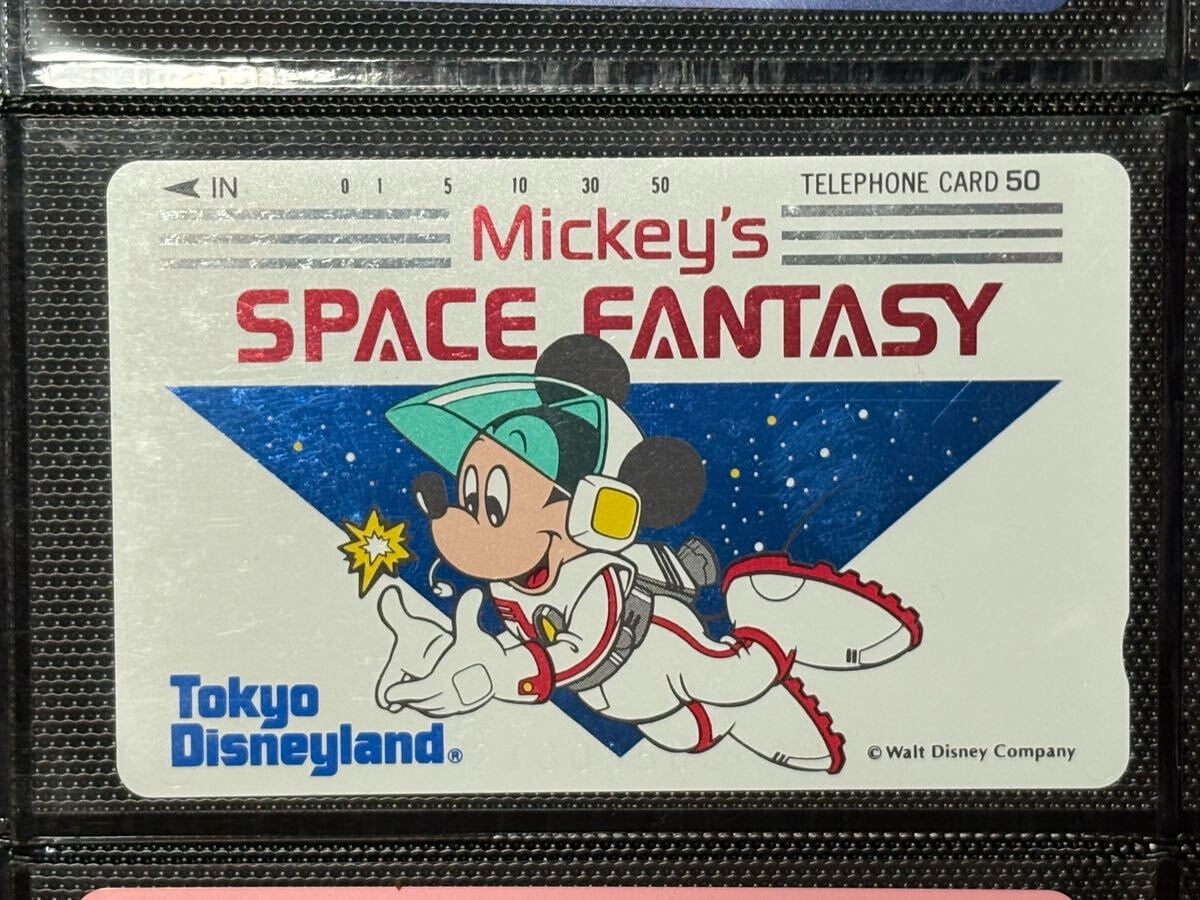 宇宙を舞台にした「Mickey's SPACE FANTASY」デザインの東京ディズニーランド限定テレホンカードです。スペーススーツを着たミッキーが星空をバックに浮かぶ、近未来感溢れるポップな一枚。SF好きの方やディズニーマニアにおすすめの貴重なコレクターズアイテムです。