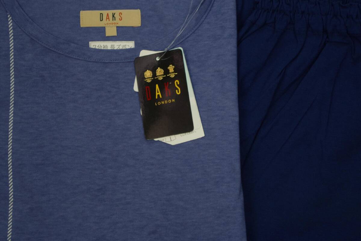●ダックス DAKS の女性用 春夏物パジャマ 、新品です。プルオーバータイプ。 7分袖、ロングパンツ。 サイズはS、バスト72-80cm。 色はブルー。素材は綿100%。サラサラコットン、涼感素材の天竺ニットで伸縮性があります。 定価税込み¥14300のお品です。 正規ライセンス会社扱い日本製です。