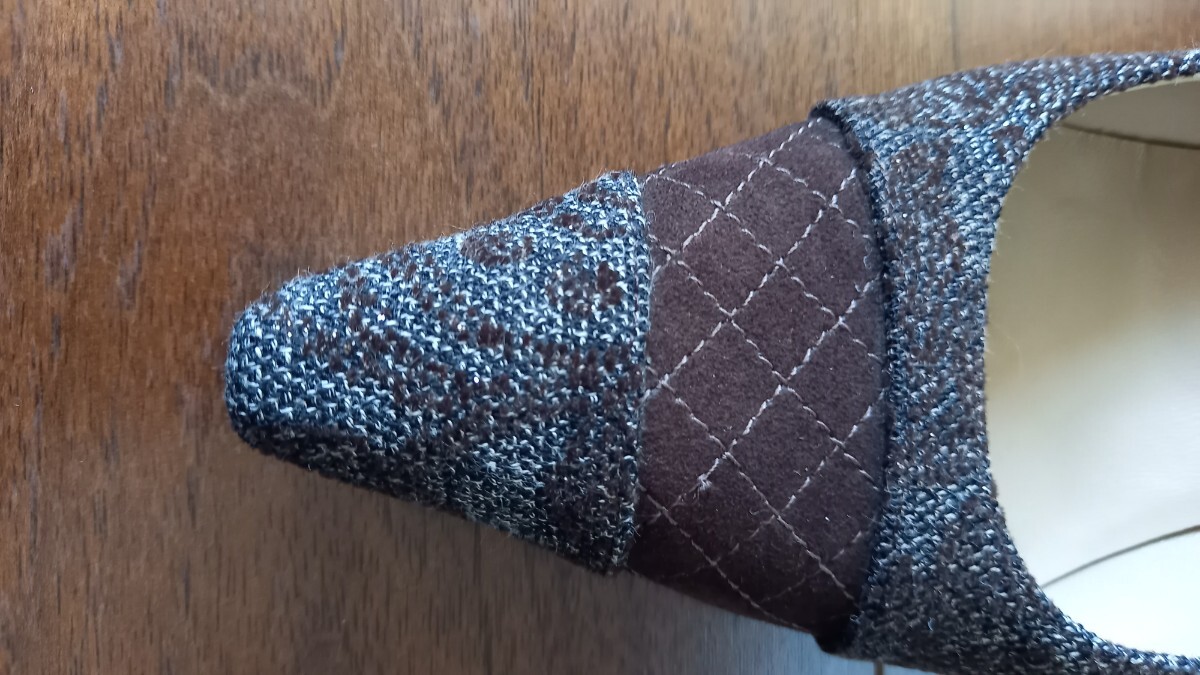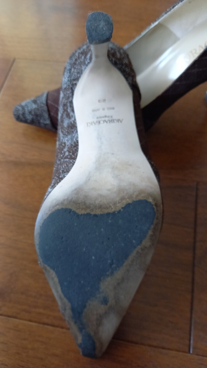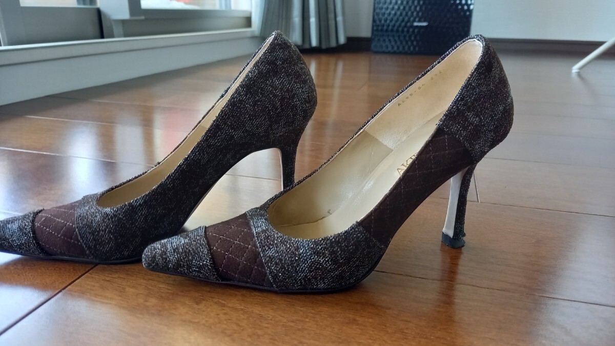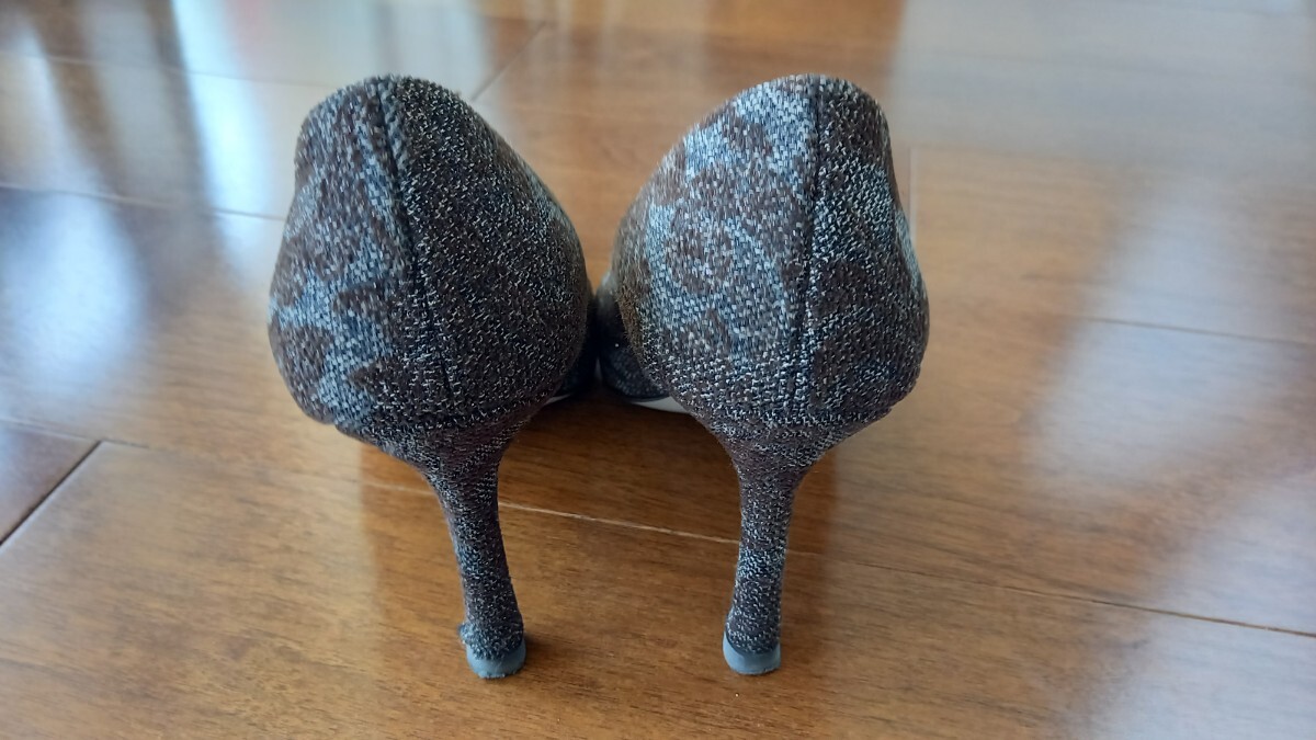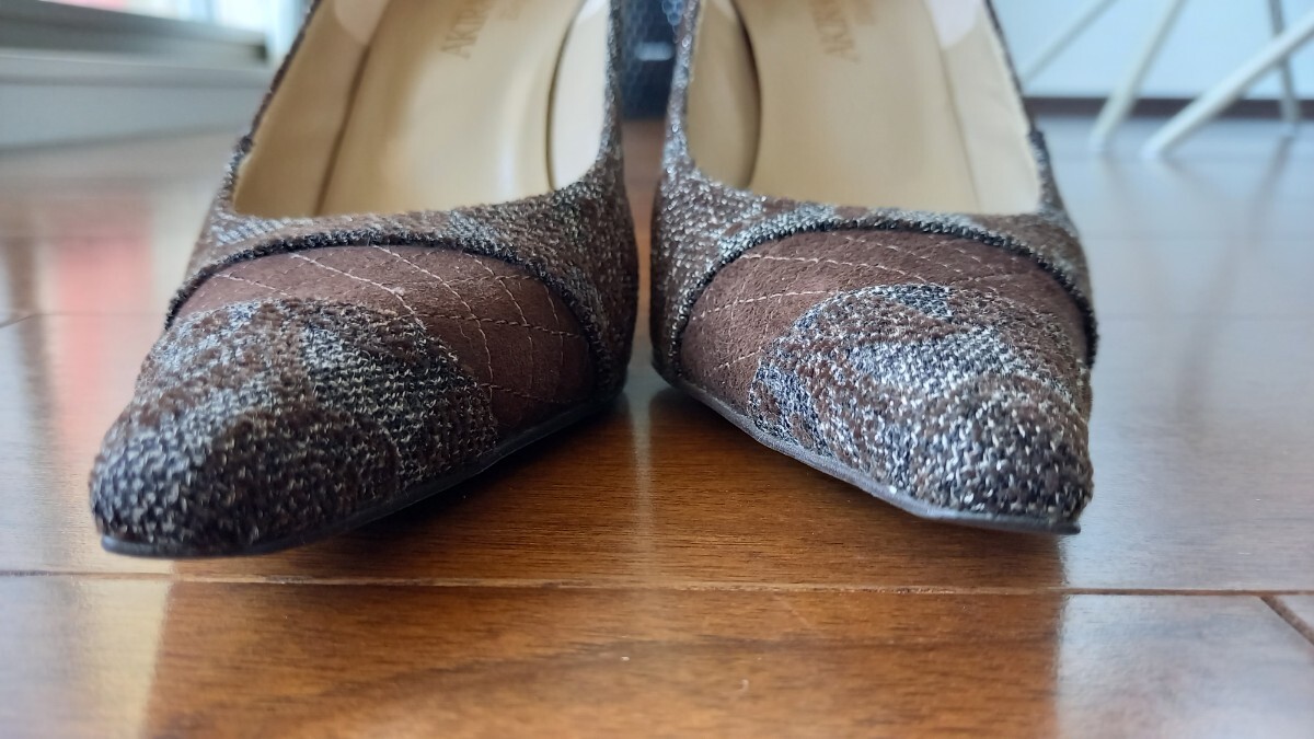 型押しで、スパンコールが散りばめられた、お洒落な一足です。