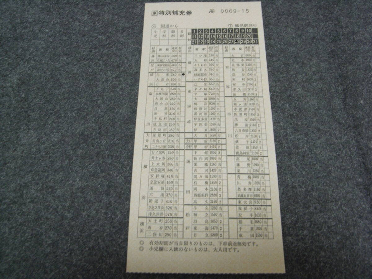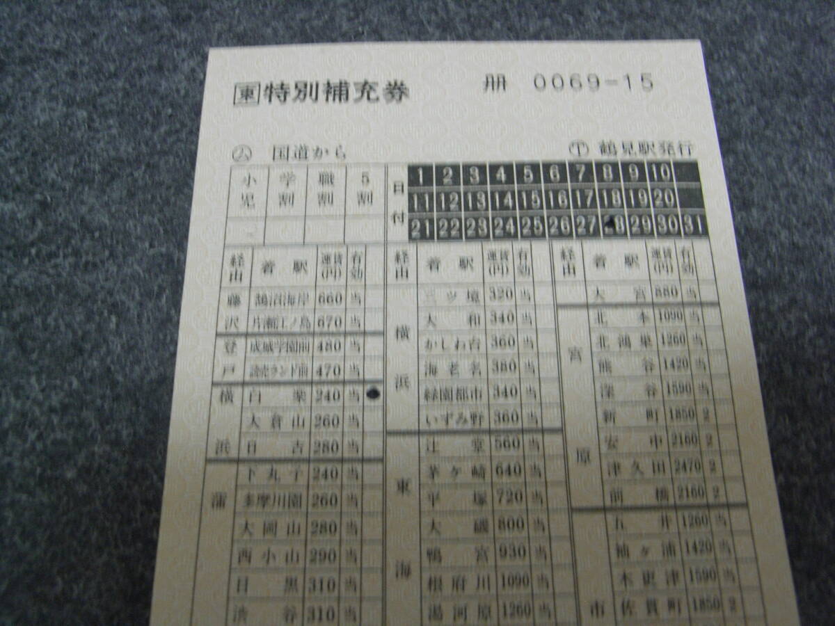 東 特別補充券 ム国道から T鶴見駅発行 0069-15 JR東日本 平成3年 1991年 ●車内補充券 鶴見線