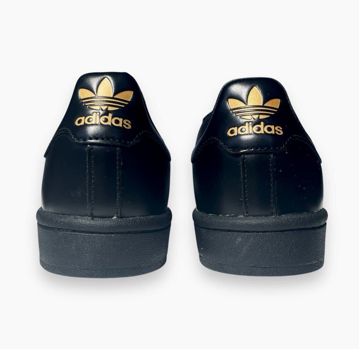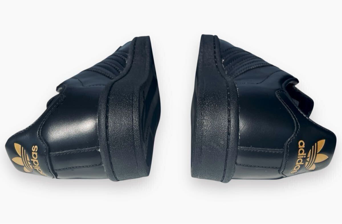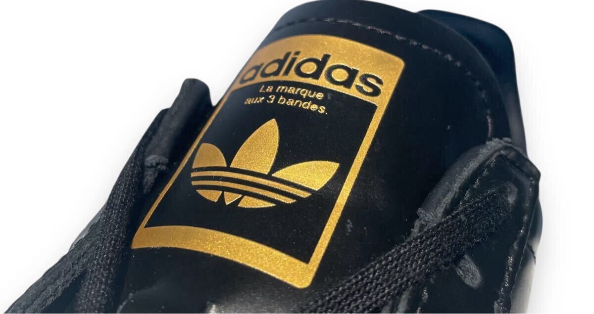 従来のイメージを覆すエレガントな質感に生まれ変わった。アッパーにはブラックのガラスレザーを使用スリーストライプスやヒールタブも同素材でまとめることで統一感を演出した。また側面やタンヒールにはゴールドの型押し施してラグジュアリーな仕上がりにこれまでのレトロなイメージとは異なるシックにもカジュアルにも対応可能なコーディネートに幅を効かせる一足