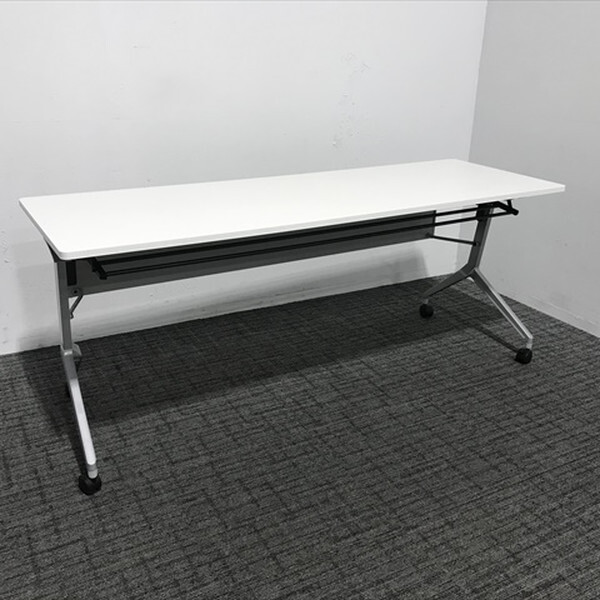 ■取り扱い番号 TF-870566B ■仕様 メーカー : コクヨ 製品名 : フラップ式会議テーブル リーフライン 幕板付 KTT-1201PAW 色素材 : ホワイト 外寸 : 幅1800mm 奥行き600mm 高さ720mm ランク : Bランク ■特徴 棚付 天板:メラミン化粧板 厚さ:20mm 脚:アルミダイカスト メラミン焼付塗装 ネスティングピッチ:90mm アジャスター付 折りたたみ、設置、移動が簡単に出来るテーブル。未使用時はコーナーにストックしておくことができ、狭いスペースでも有効に活用することが出来ます。 |
