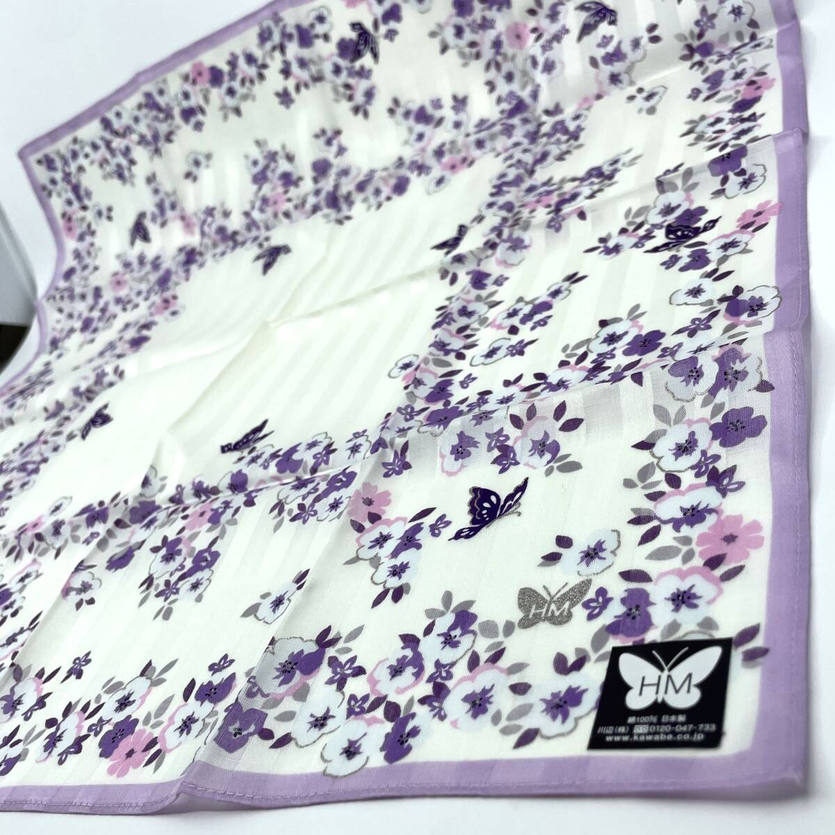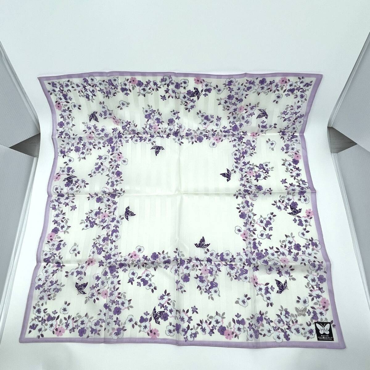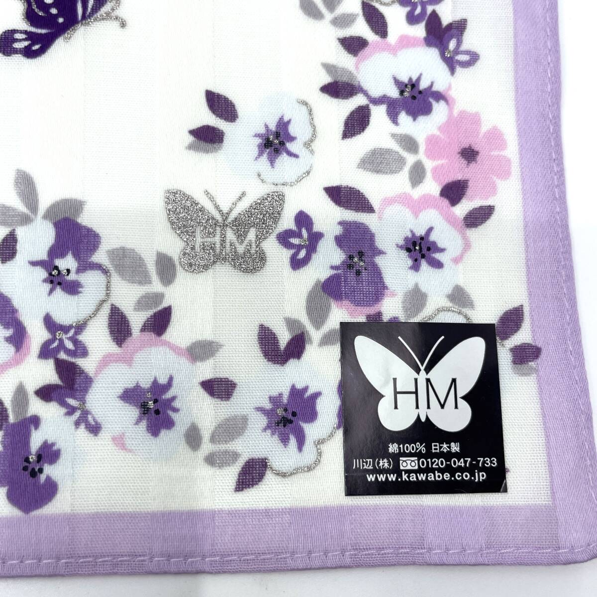 【シール付き未使用品】HANAE MORI ハナエモリ ハンカチ バンダナ パープル系 ラメ ストライプ 花柄 フラワー 小花 蝶々 綿 コットン