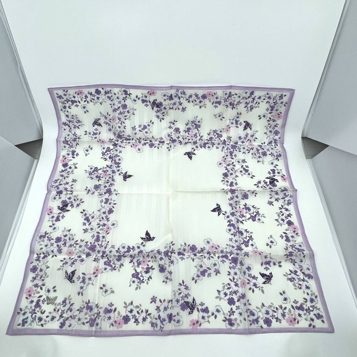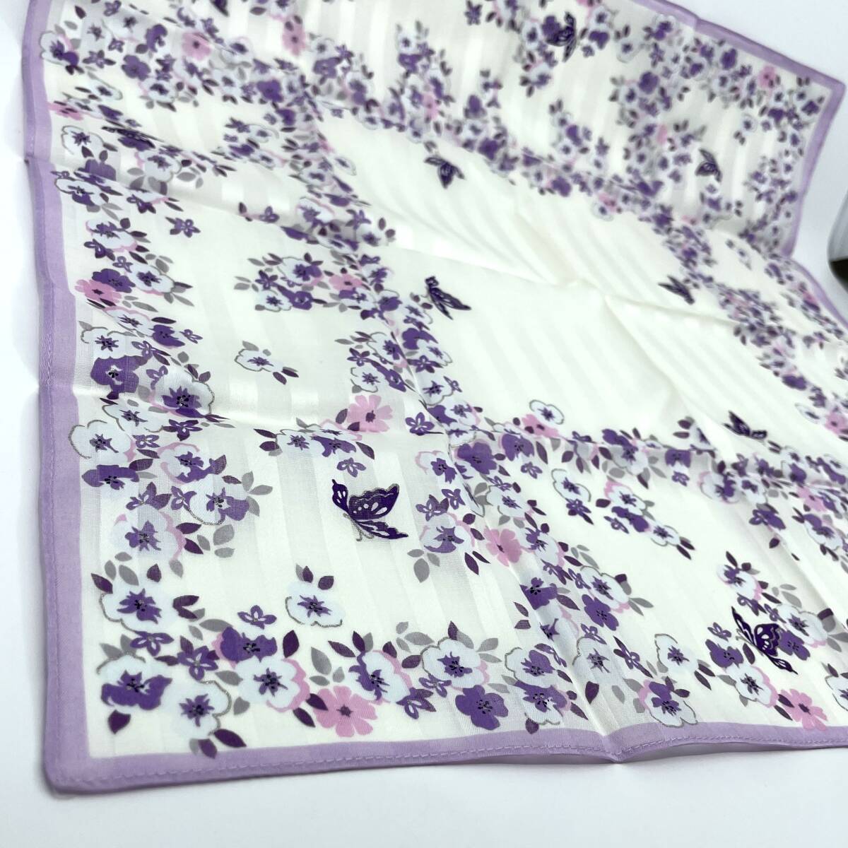 ハンカチ バンダナ パープル系 ラメ ストライプ 花柄 フラワー 小花 蝶々 綿 コットン100% ラグジュアリー エレガント