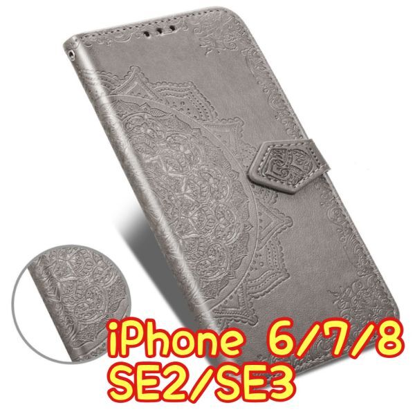 エンボス加工スマホケース 手帳型 iPhone SE2/SE3 グレー