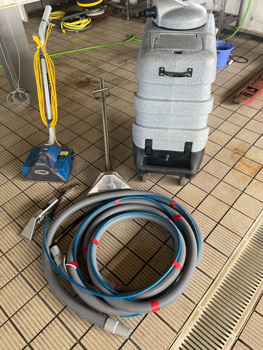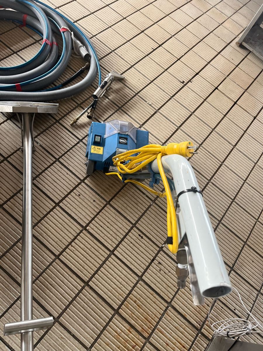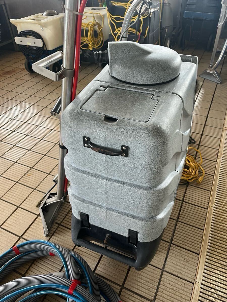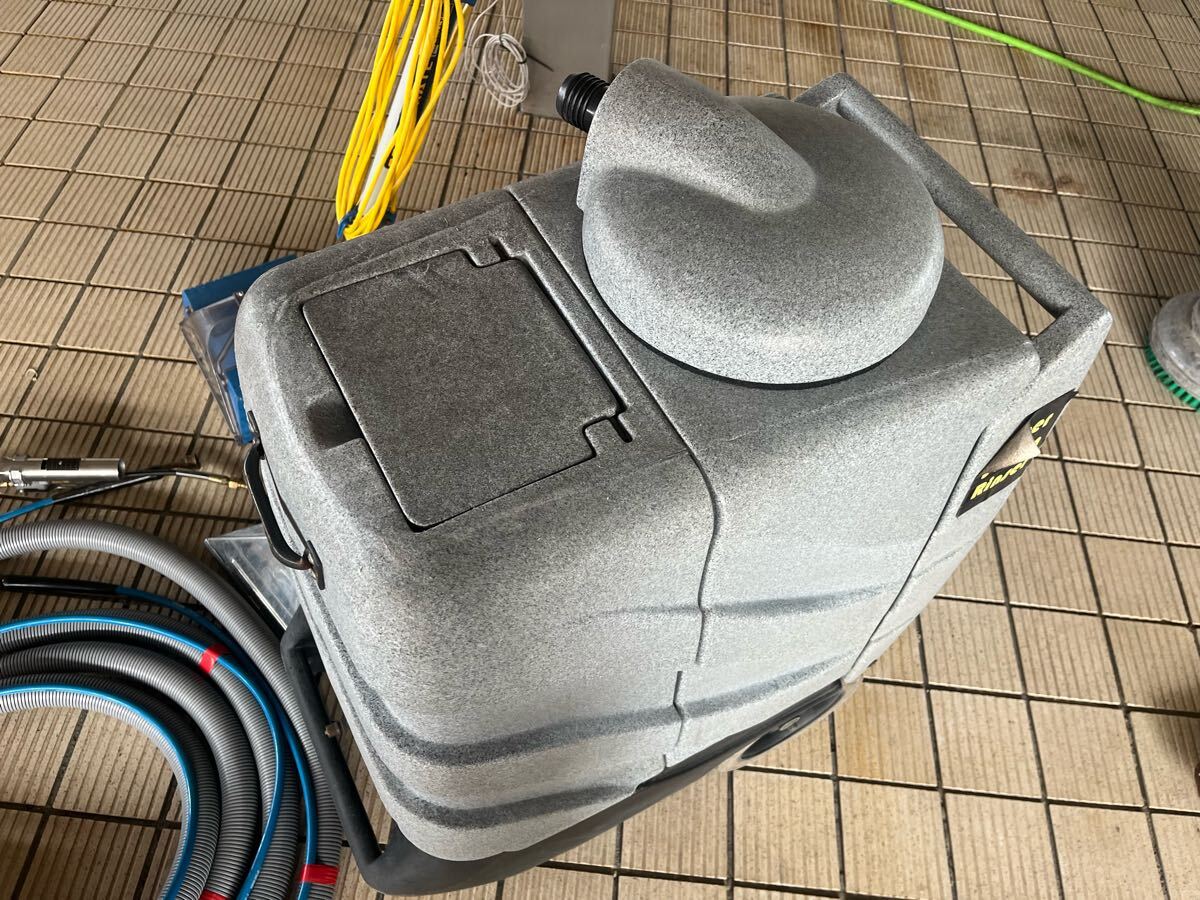 カーペット洗浄定番機に強力な回転ブラシパワーウォンドをつけていますので作業効率がかなりアップします。パワフルなブラッシングを可能にしてアジテージにかかる時間を節約します。前処理剤を散布後にリンス洗浄機することで一工程を短縮できます。パワーウォンドゴム一式新しいものにしています。問題なく動きます。