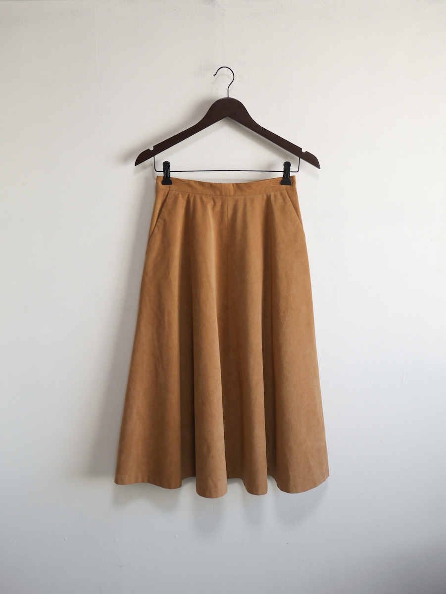 フェイクスエードのマットな起毛感が上品な印象のフレアスカート。 落ち感のある素材が作り出す適度に広がりを見せてくれるシルエットは女性らしさとカジュアルさを兼ねそなえた一枚です。 定価19800円です。