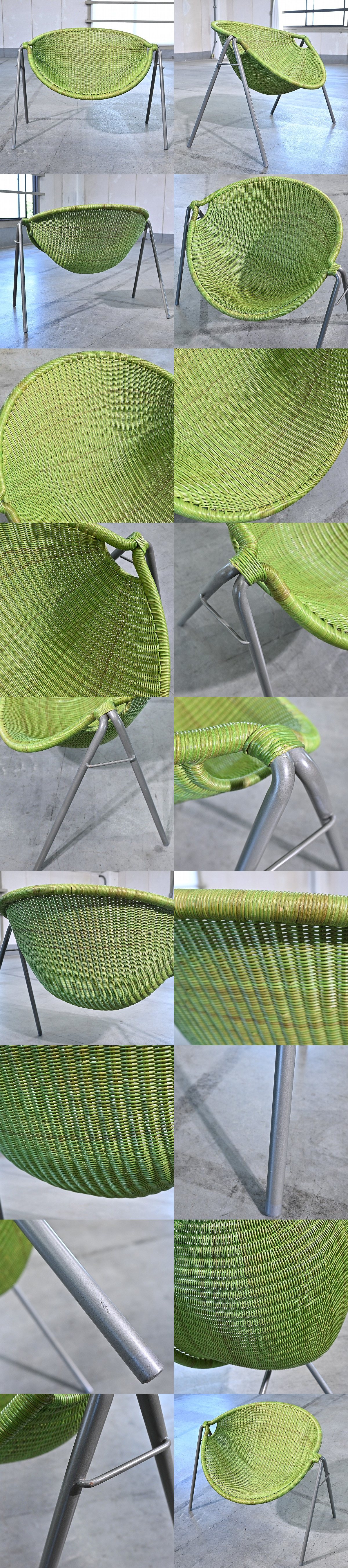 ヤマカワラタン 15万「CL-312 KANI」ラウンジチェア A 箟敏生 籐 スチール脚 シングルソファ リビング ダイニング 椅子 Yamakawa