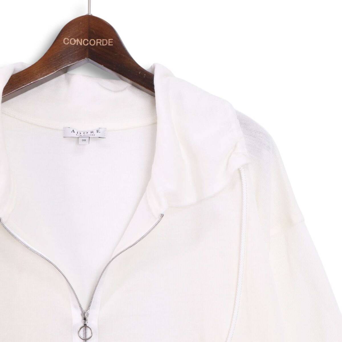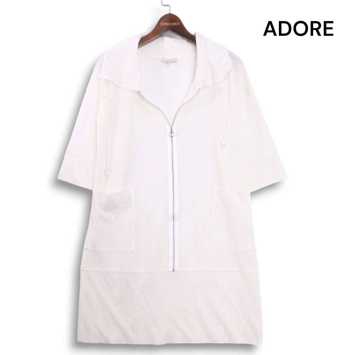 ADORE アドーア 春夏 リネン♪ 5分袖 ジップ プルオーバー チュニック Sz.38 レディース 白