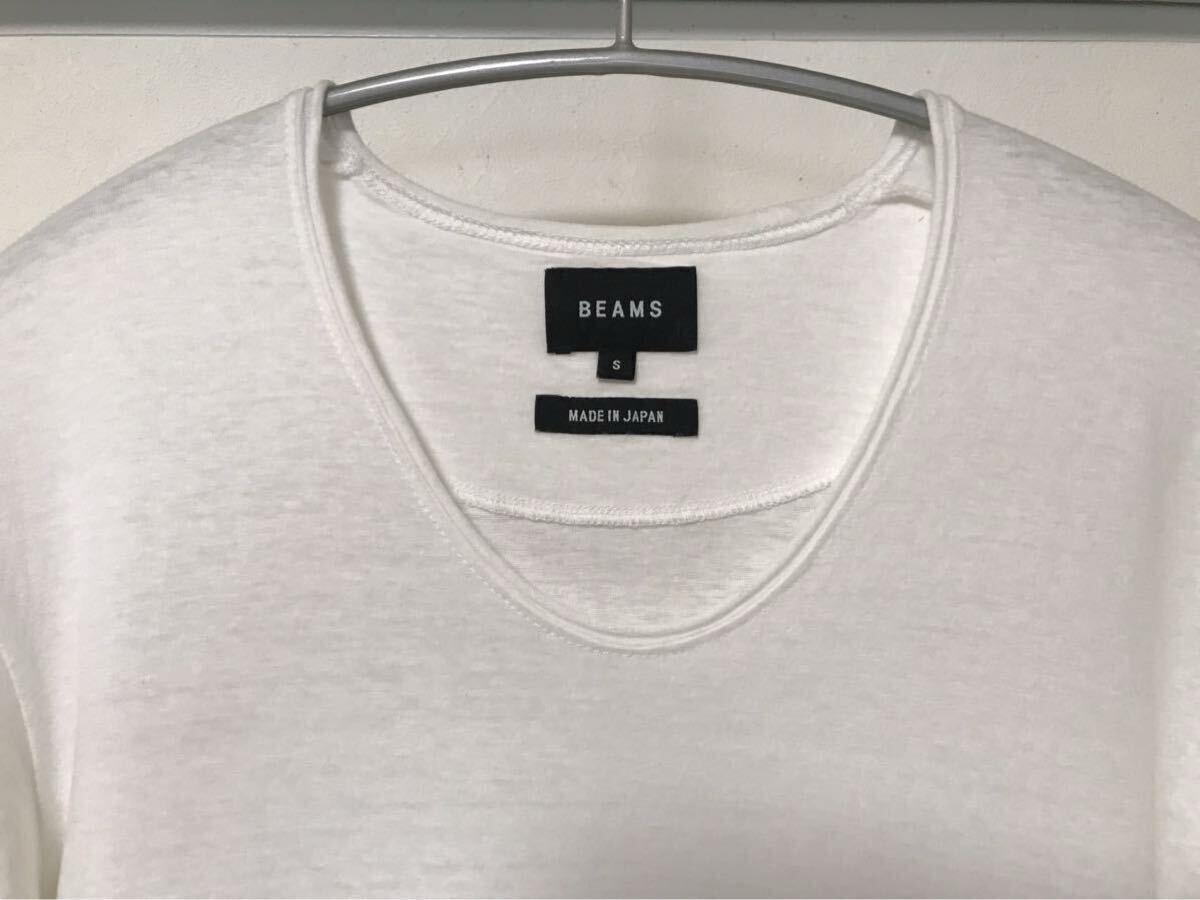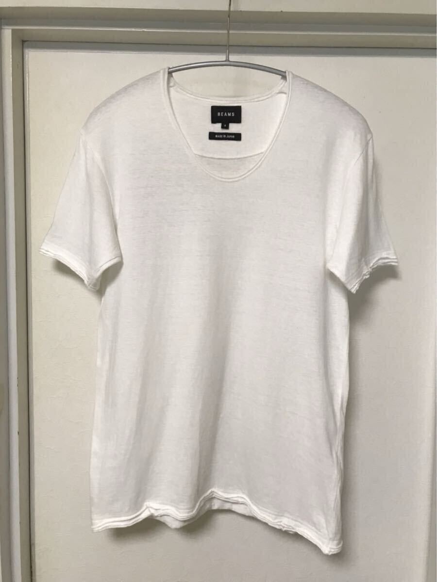 ●BEAMSカットオフ天竺UネックショートスリーブTシャツになります。ZOZOTOWNにて購入。試着後、自宅保管の商品になります。保管に伴うシワが有ります。試着のみですが、カラーがWHITEで、自宅保管している商品になりますので、完璧をお求めの方や、特に神経質な方は入札をご遠慮下さい。また、受け取り連絡を入れて頂けない方も入札はご遠慮願います。落札後はノークレーム ノーリターンで宜しくお願い致します。