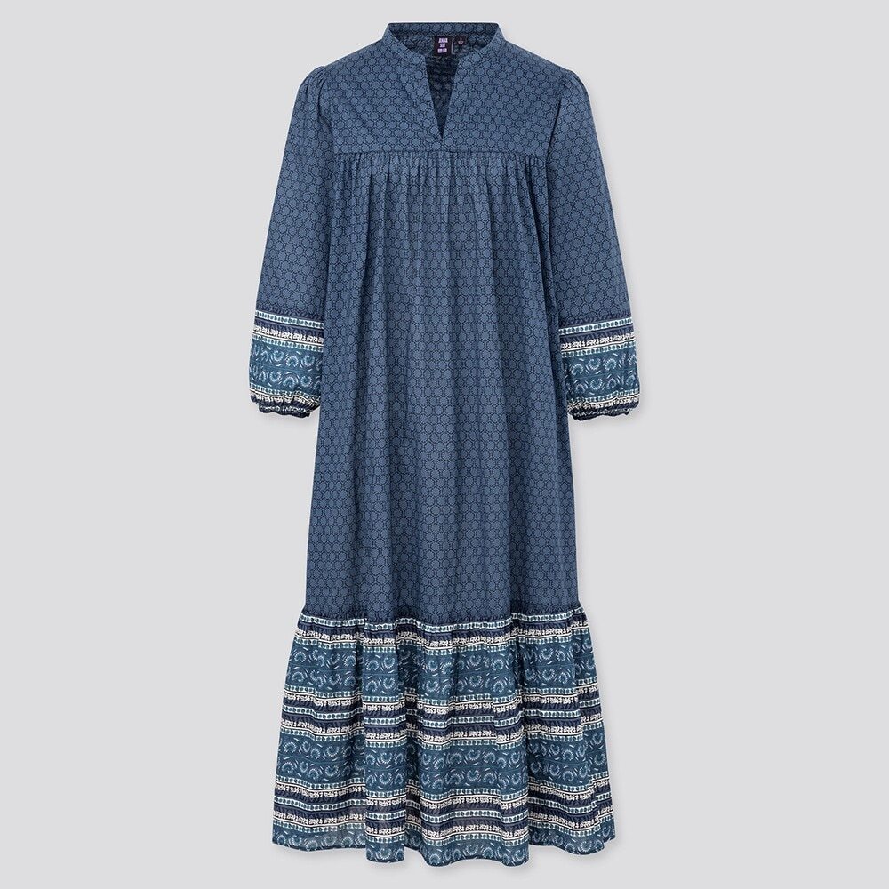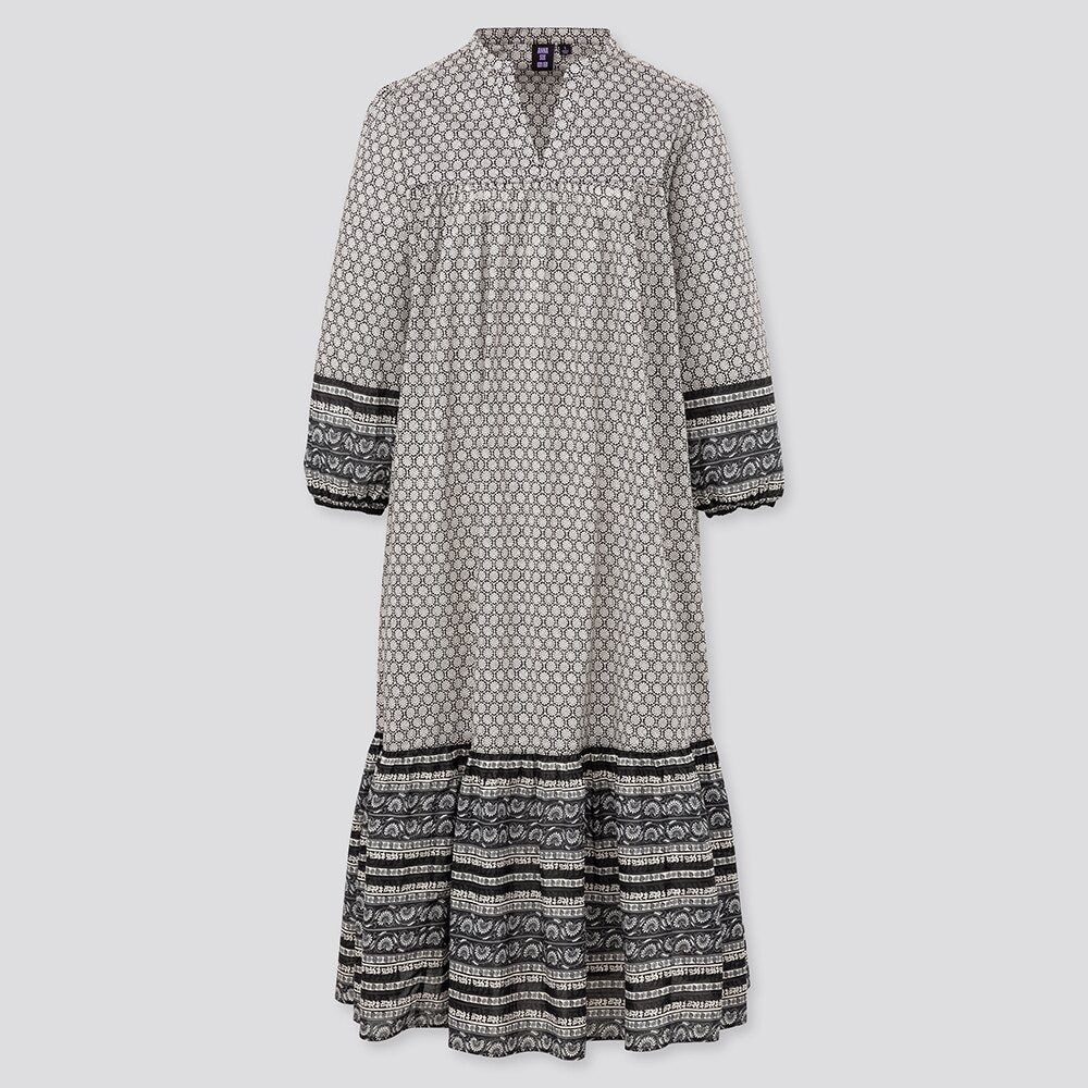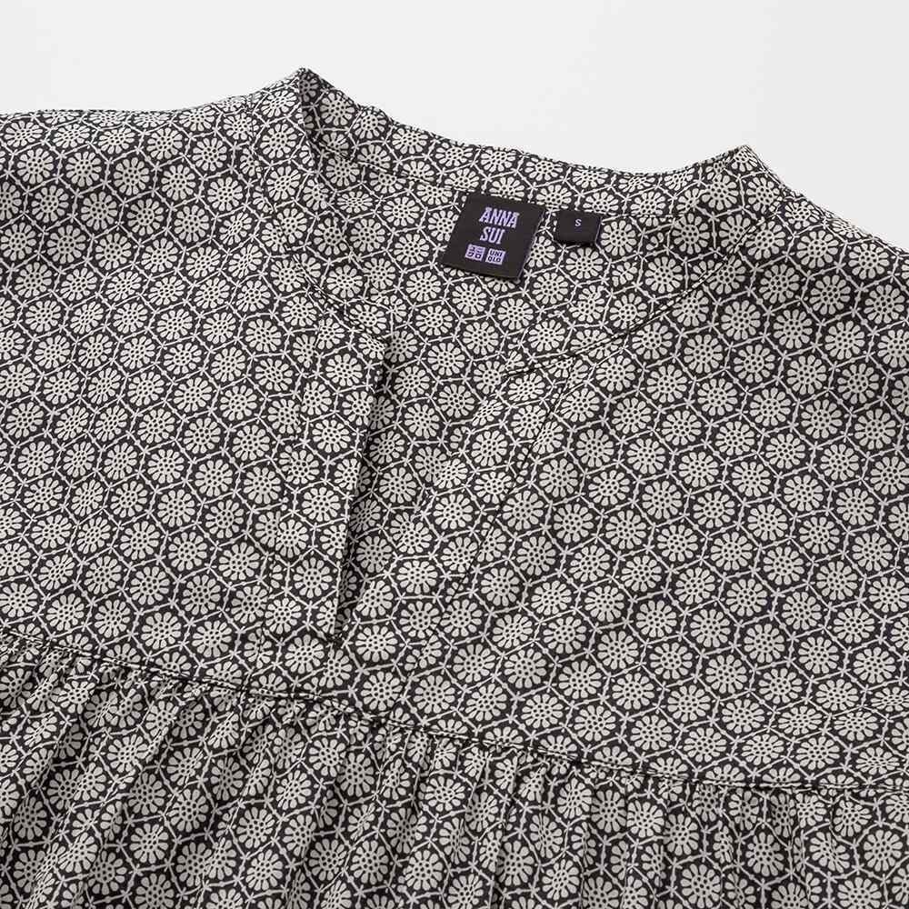 【新品・S・ブラック】ユニクロ×アナスイ コットンワンピース(7分袖 ANNA SUI/アナ スイとユニクロが贈るソフトボヘミアンコレクション