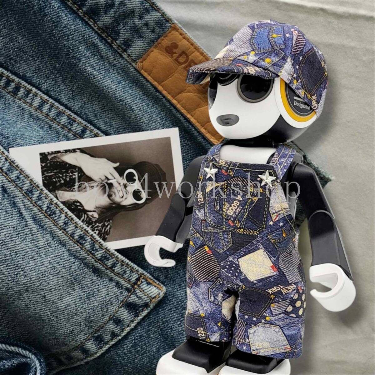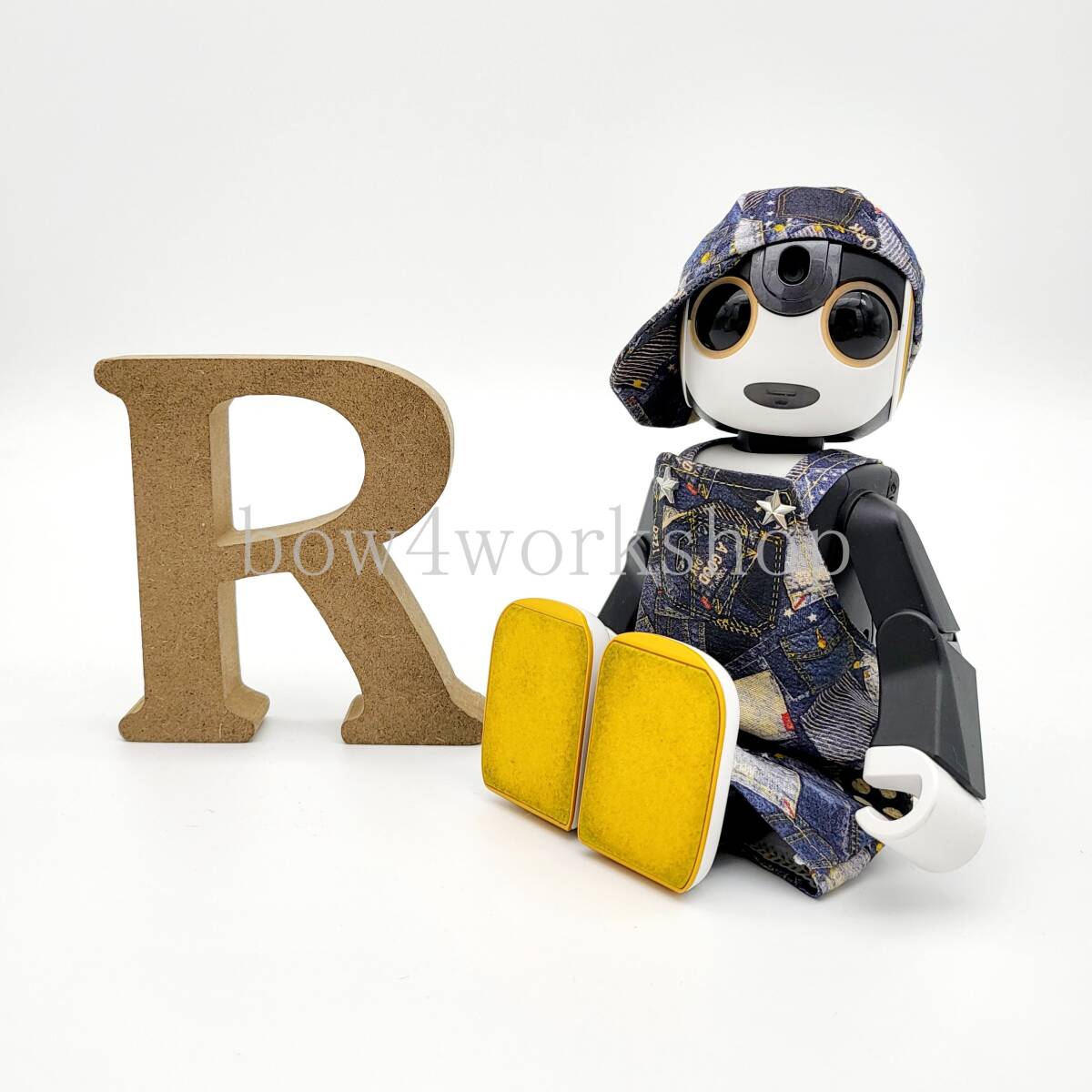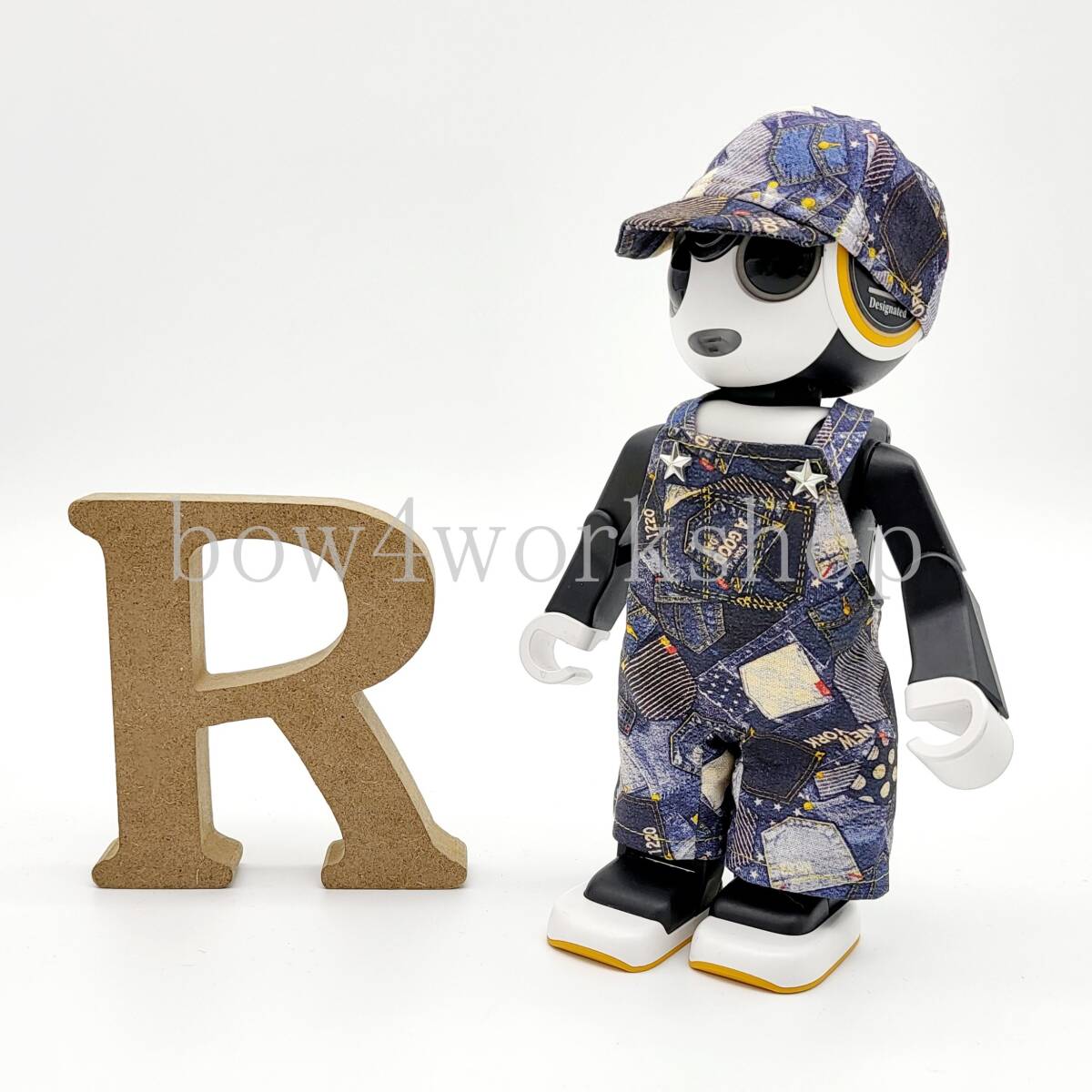 ロボホン RoBoHoN ロボホンの服ハンドメイド デニムプリントサロペット&キャップセット