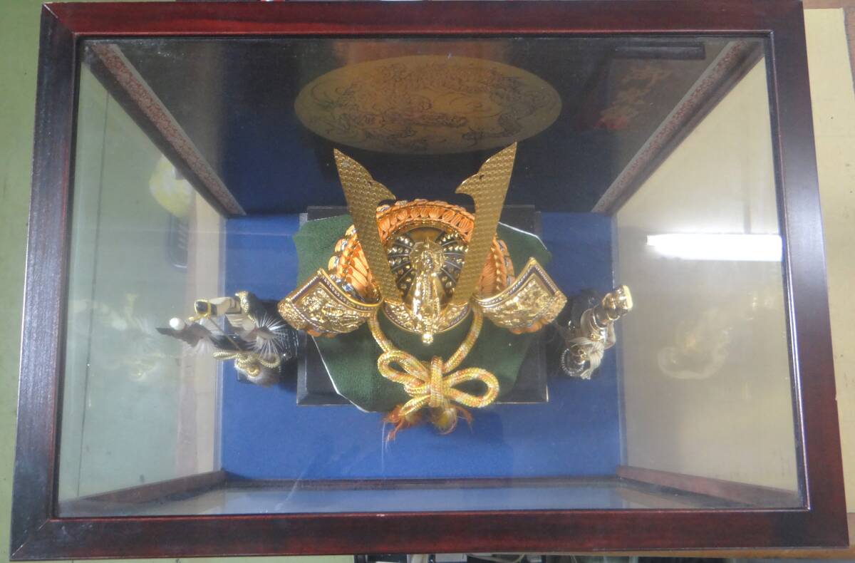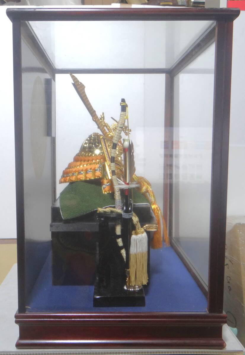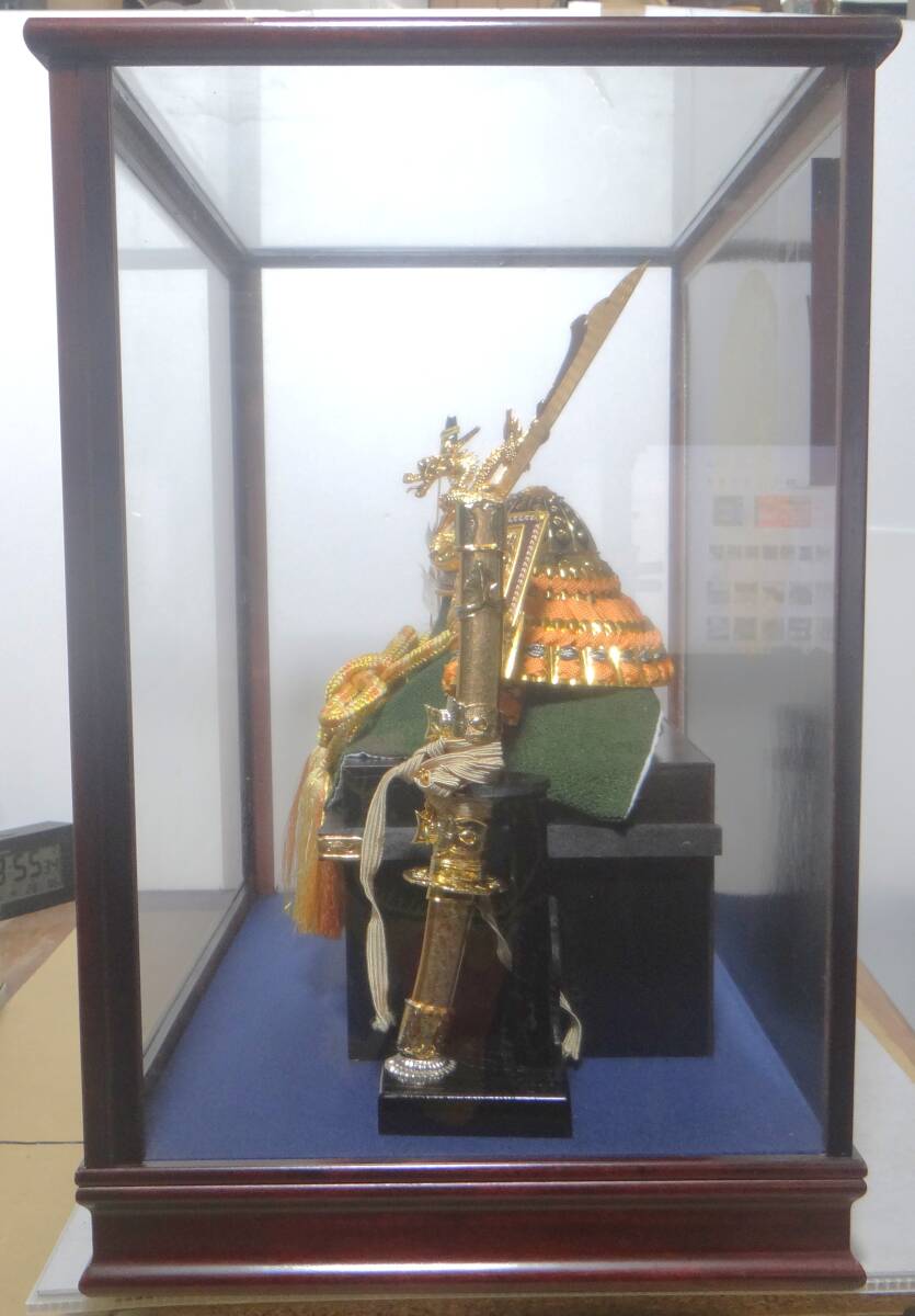 出品は美品 五月人形 端午の節句 兜飾り 兜 弓太刀付き ガラスケース 現状品
