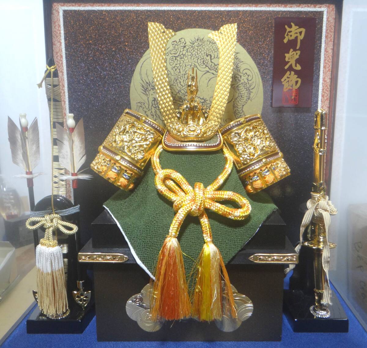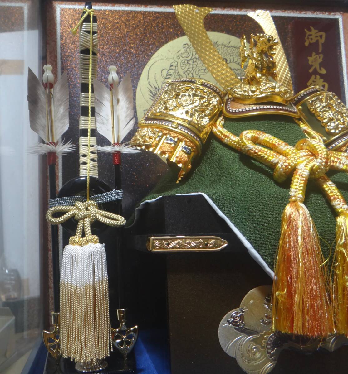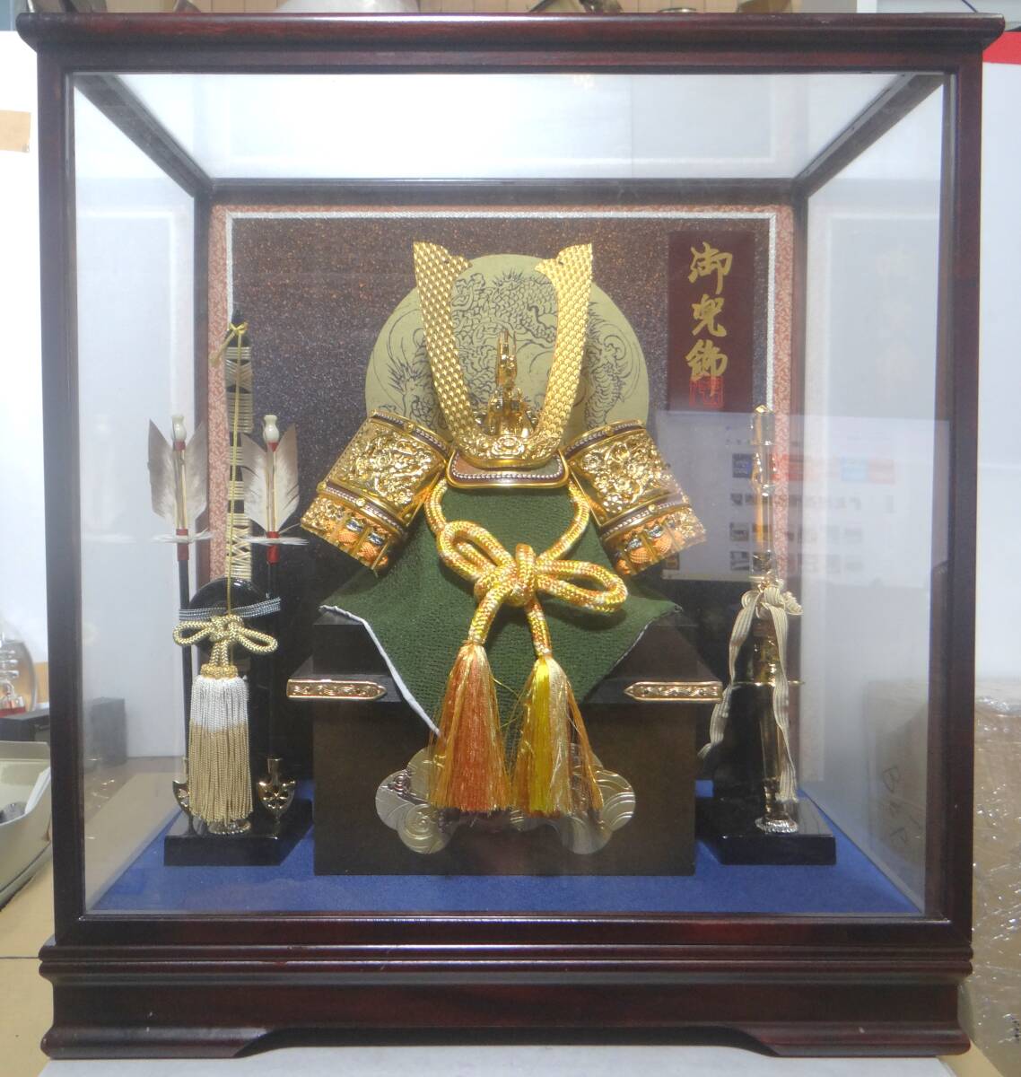 出品は美品 五月人形 端午の節句 兜飾り 兜 弓太刀付き ガラスケース 現状品