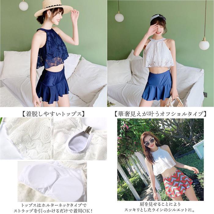 | 商品説明 | ・・【おしゃれな水着で楽しめる】 ・レース×フレアスカートが大人可愛い水着が発売♪ ・【着脱しやすいトップス】 ・トップスはホルターネックタイプでストラップを引っかけるだけで着用OK! ・【華奢見えが叶うオフショルタイプ】 ・肩を見せることによりスッキリとしたラインのシルエットに。 ・【露出を抑えたデザイン】 ・トップスにはレース素材を使用し、ふんわりと胸元の露出を抑えてくれる◎ ・【動きやすいパンツ仕様】 ・フレアスカートはショートパンツと一体型なので、動きやすくめくれても安心。 ・【豊富なデザイン】 ・シンプルなワンカラーやリゾートに映える花柄デザインなど、お気に入りがきっと見つかる! |