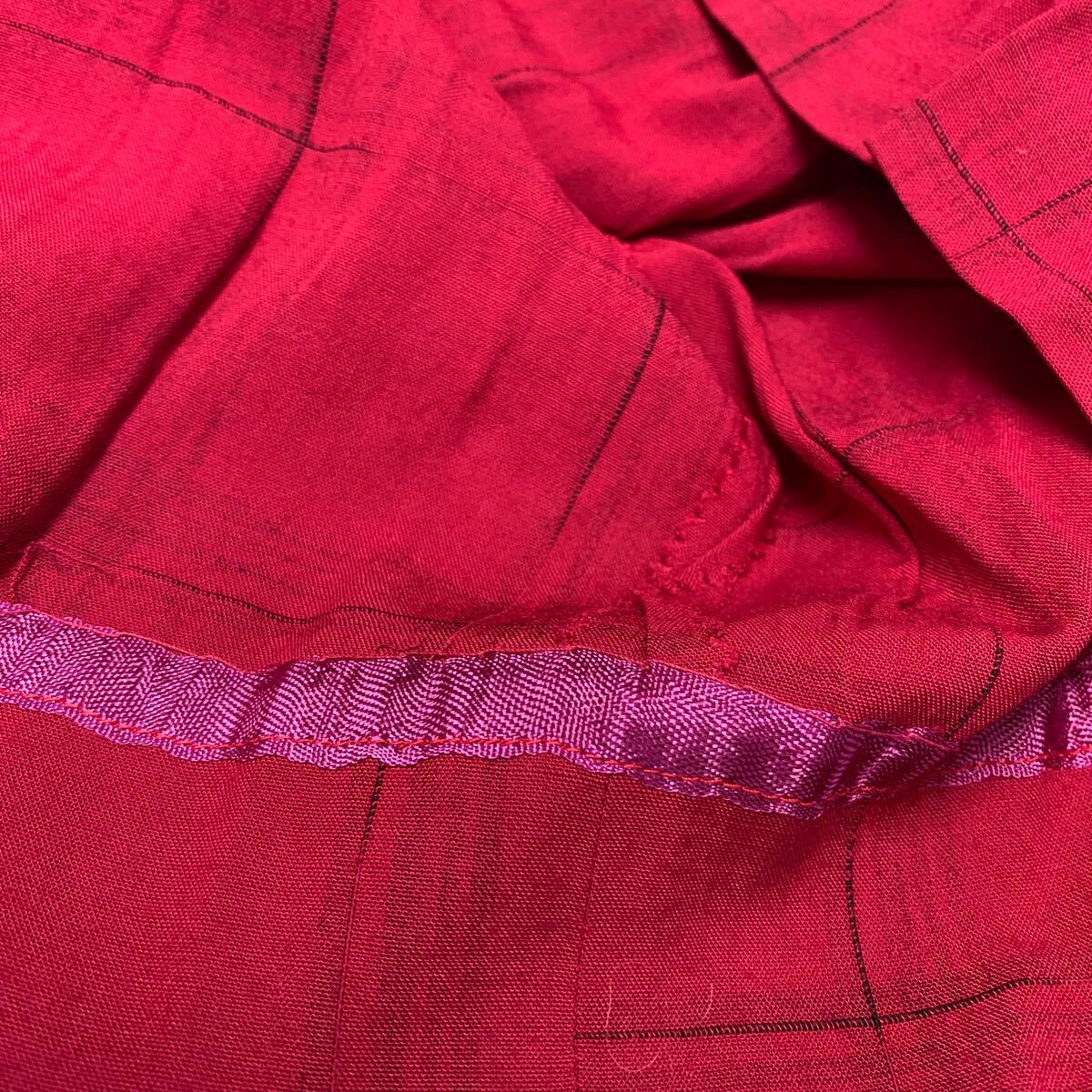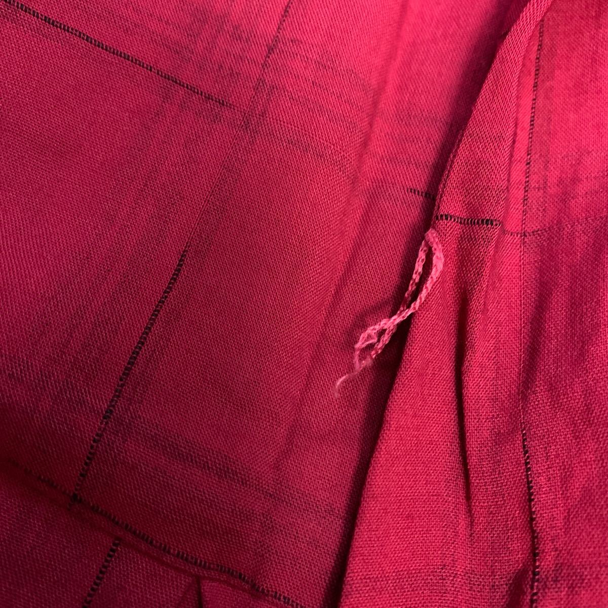 赤地に、粗めのシャドウチェックのような黒のチェックです。