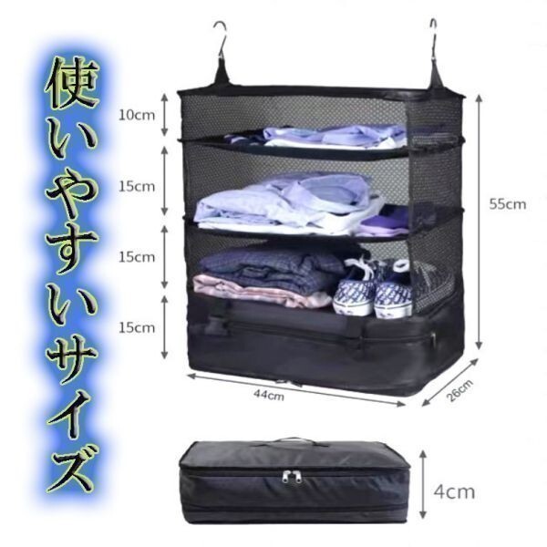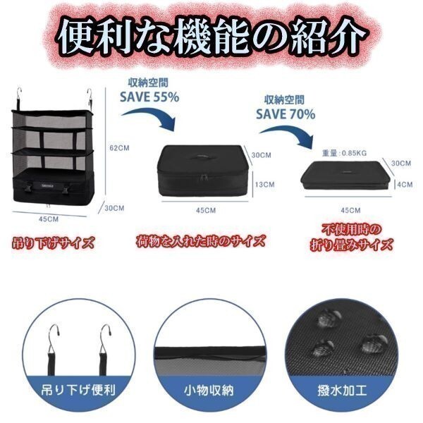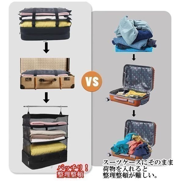 | 旅行用収納ボックス クローゼット 吊り下げ収納 スーツケースインナーバック キャンプ 入院 老人ホーム 衣装ケース 衣類ラック トラベルポーチ衣類収納 両行用品収納 圧縮バック 4段 ファスナー付き折り畳み式 | |||